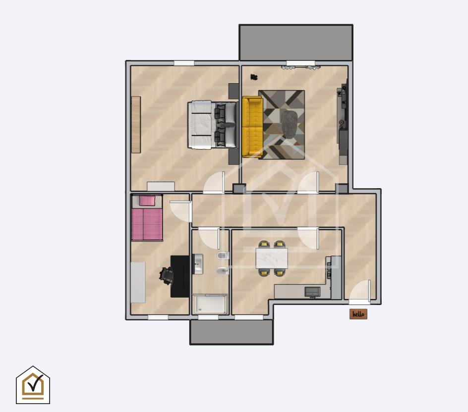 Esteso in 90 mq, l'appartamento presenta un disimpegno che porta ad un'ampia zona giorno con cucina abitabile e salone luminoso. Subito dopo la zona notte con due camere da letto, entrambe finestrate ed un bagno luminosissimo ed arieggiato.