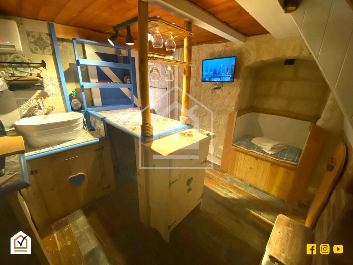 E' così composto: ingresso in graziosa zona giorno, bagno completo di tutti gli accessori e camera da letto.