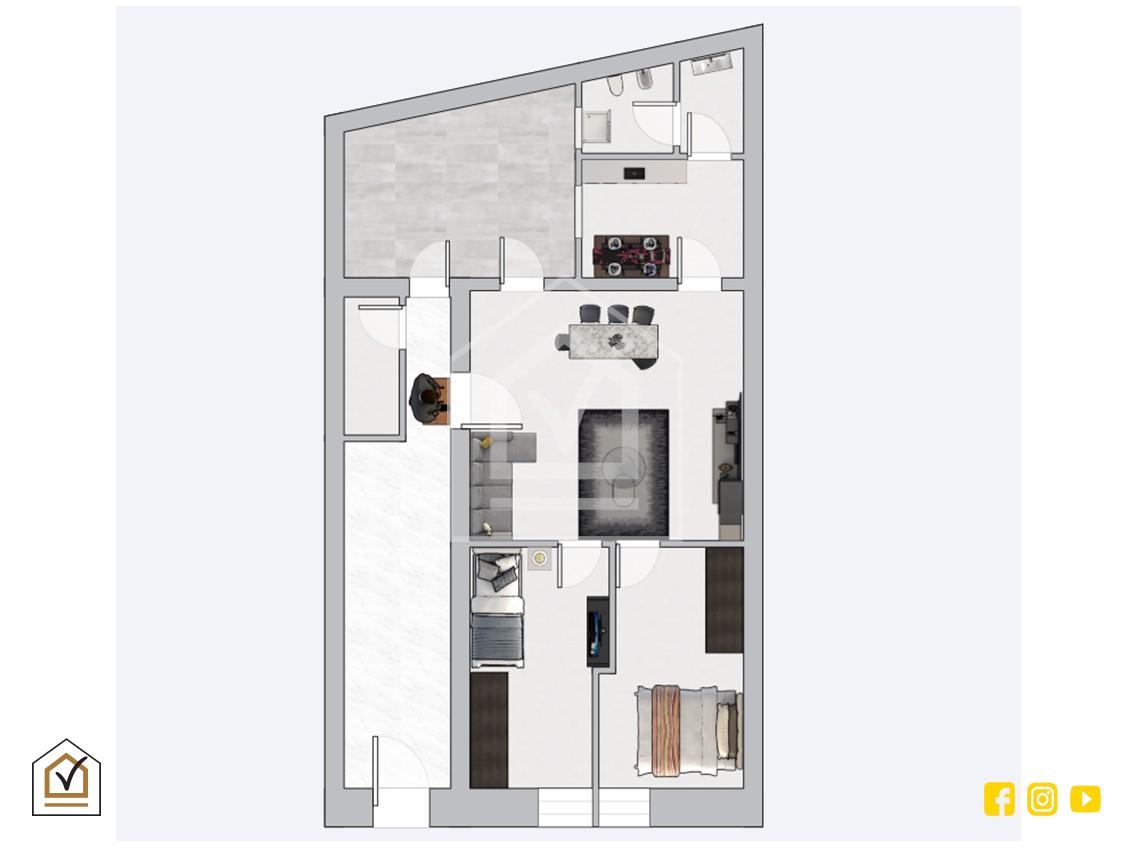 Punto di forza dell' abitazione è la zona strategica. Infatti, risulta interessante sia per la realizzazione di una struttura ricettiva sia per essere locato a studenti e/o lavoratori fuori sede. E' così composto: ingresso nel salone, a sinistra cucina abitabile e bagno e a destra si sviluppano le due camere da letto. E' presente anche un' utile ripostiglio di proprietà nell' androne condominiale.