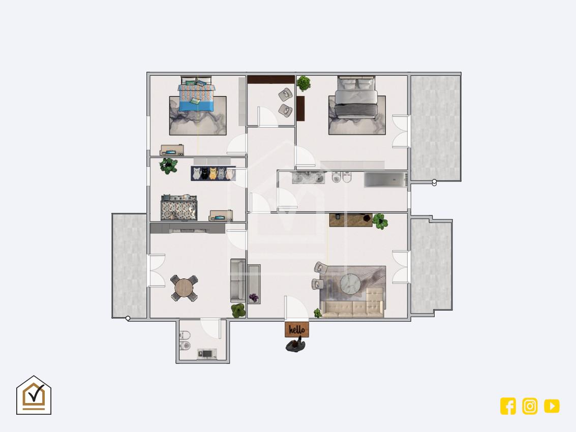 Data la sua pianta regolare è possibile, apportando alcune modifiche, ricreare un moderno e funzionale open space; spazio ideale per tutti coloro che desiderino passare momenti di convivialità con amici e parenti! Con doppia esposizione, con balconi e completa di cantina di proprietà al piano seminterrato.