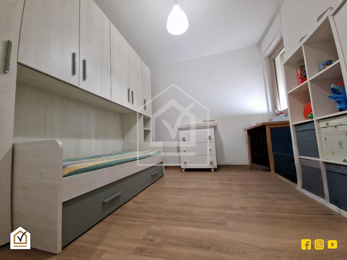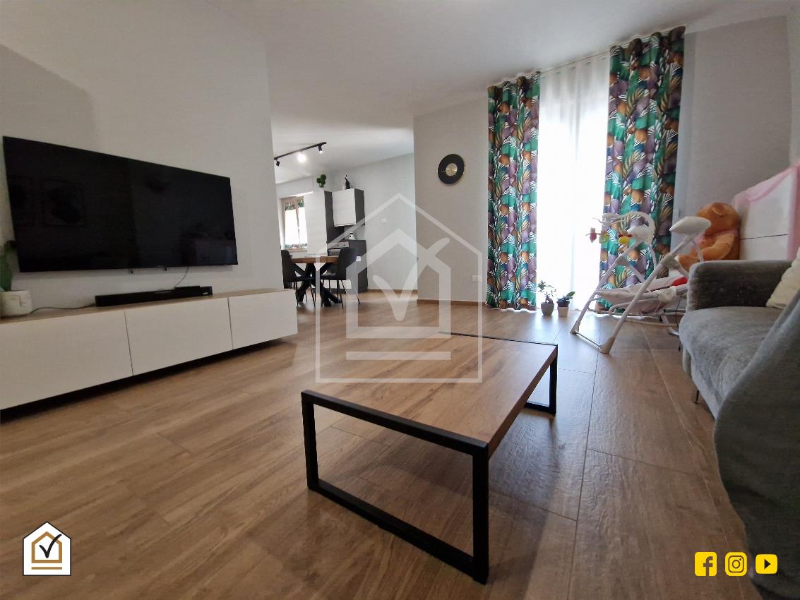 La soluzione si distingue per la modernità degli ambienti e per la cura dei dettagli: all’ingresso troviamo un ampio e accogliente salone che si apre su una luminosa zona giorno living con affaccio diretto sulla veranda esterna, ideale per trascorrere momenti di relax o convivialità. Un disimpegno ben organizzato conduce alla prima camera da letto, ad un comodo bagno, alla spaziosa camera matrimoniale e a un secondo servizio che funge anche da pratica zona lavanderia.