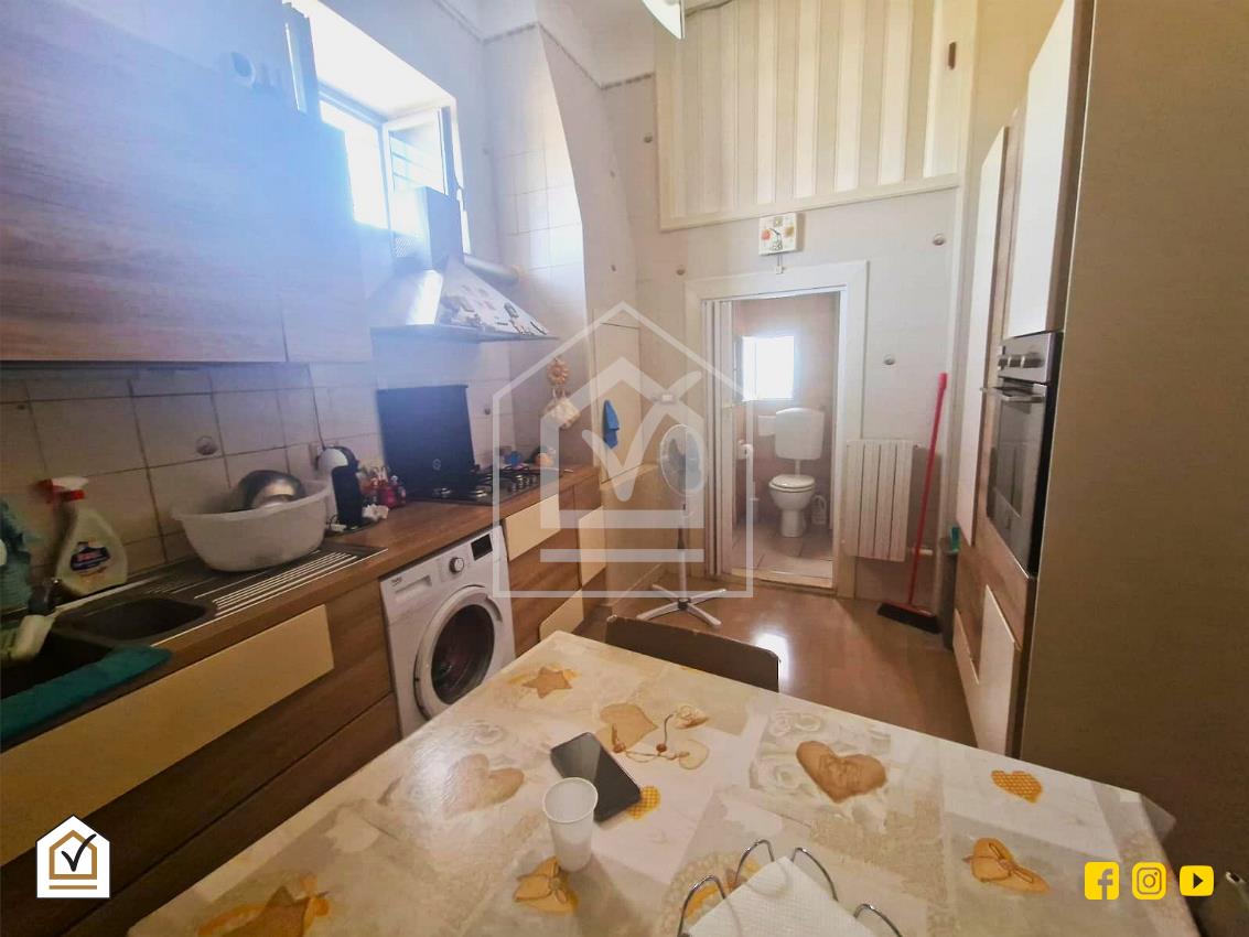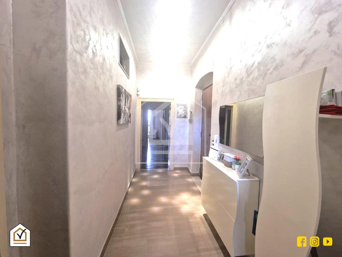 Entrando nell'appartamento si è accolti da un disimpegno che ci accoglie, sulla sinistra, in una cucina luminosa ed arieggiata con esposizione angolare, bagno finestrato, e a seguire, adiacente a quest'ultima, una cameretta con lucernario a muro. A destra del disimpegno vi è un ampio soggiorno con finestra, proseguendo camera da letto con balcone che affaccia su strada principale. Al di sopra del bagno, utilissimo soppalco.