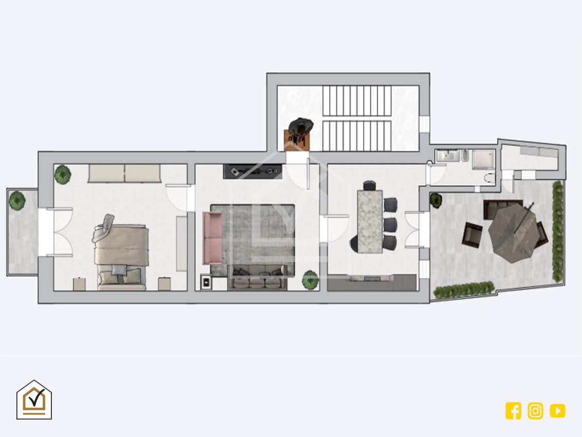 Grazie alla posizione centrale, all’ampiezza degli ambienti e al comfort degli spazi esterni, questo appartamento rappresenta una soluzione ideale sia per giovani coppie, sia per chi desidera un punto d’appoggio comodo e ben collegato in città.