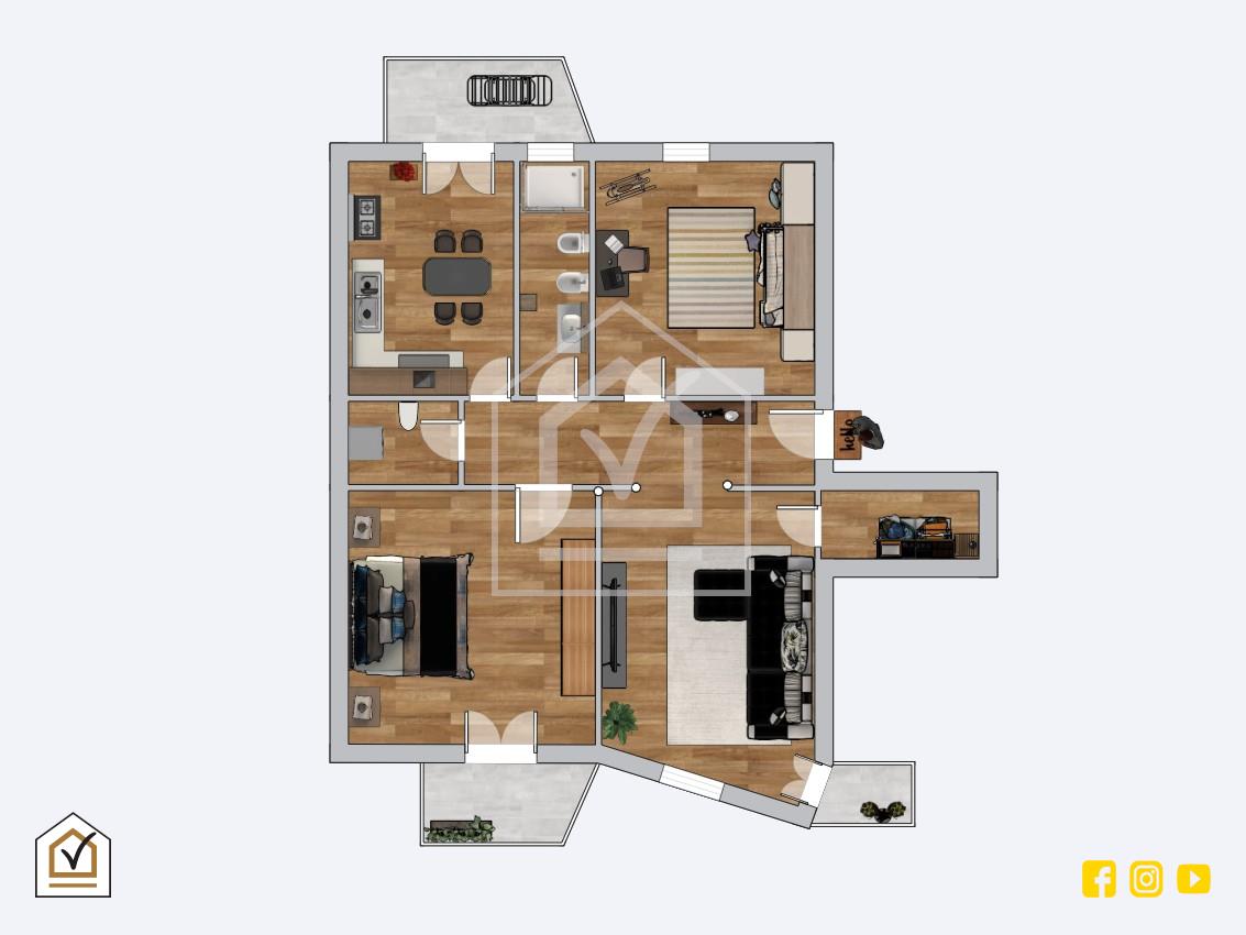 La proprietà immobiliare è composta da ingresso nel disimpegno che ci condurrà subito, sulla sinistra, all'ampio salone completo di utile ripostiglio provvisto di balcone con affaccio su via Pasubio; proseguendo lungo il corridoio avremo accesso alla cameretta, al bagno e alla comoda cucina abitabile provvista, anch'essa, di balcone che affaccia su via De Gemmis. La camera da letto padronale fornita di balcone e la zona lavanderia provvista di sanitari completano la soluzione.
