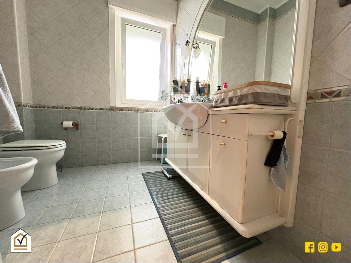 Uno degli elementi di maggiore pregio dell’appartamento è la presenza di finestre in tutti gli ambienti, compresi cucina e servizi, che garantiscono una costante ventilazione naturale e una luminosità uniforme durante tutta la giornata.