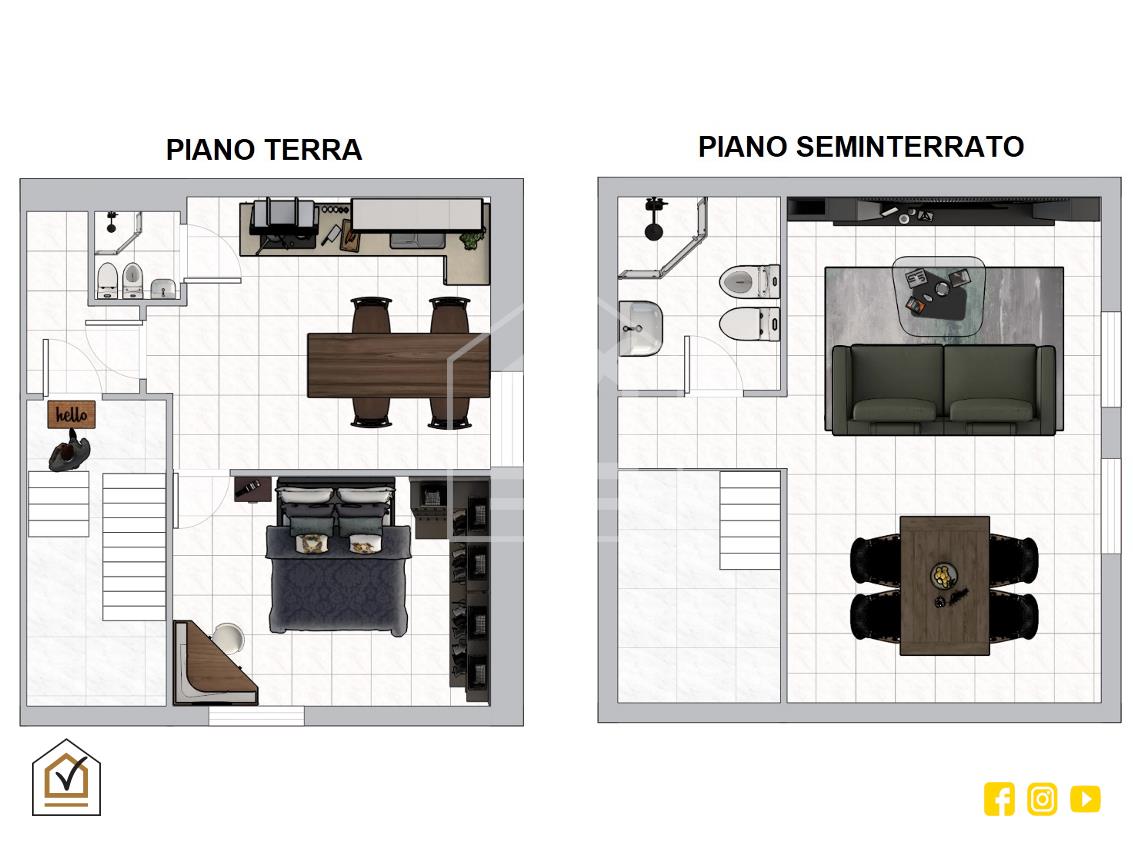 Scendendo al piano seminterrato, si accede a un ampio ambiente attualmente accatastato come deposito, ma utilizzato come sala living o soggiorno. Questo spazio rappresenta un vero valore aggiunto, poiché può essere adattato facilmente in base alle esigenze personali: area relax, studio, stanza hobby o ulteriore zona conviviale. Sullo stesso livello è presente anche un secondo servizio, dettaglio che rende l’abitazione ancora più funzionale.
