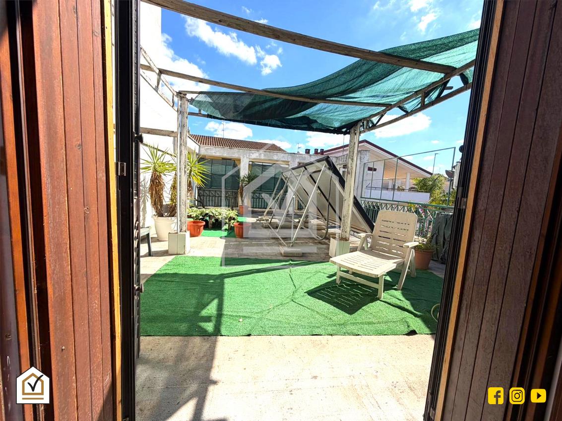 All'ingresso dell'abitazione, ad accoglierci troviamo un patio di 60 mq che impreziosisce l'abitazione grazie alla presenza di alberi e piante ornamentali.