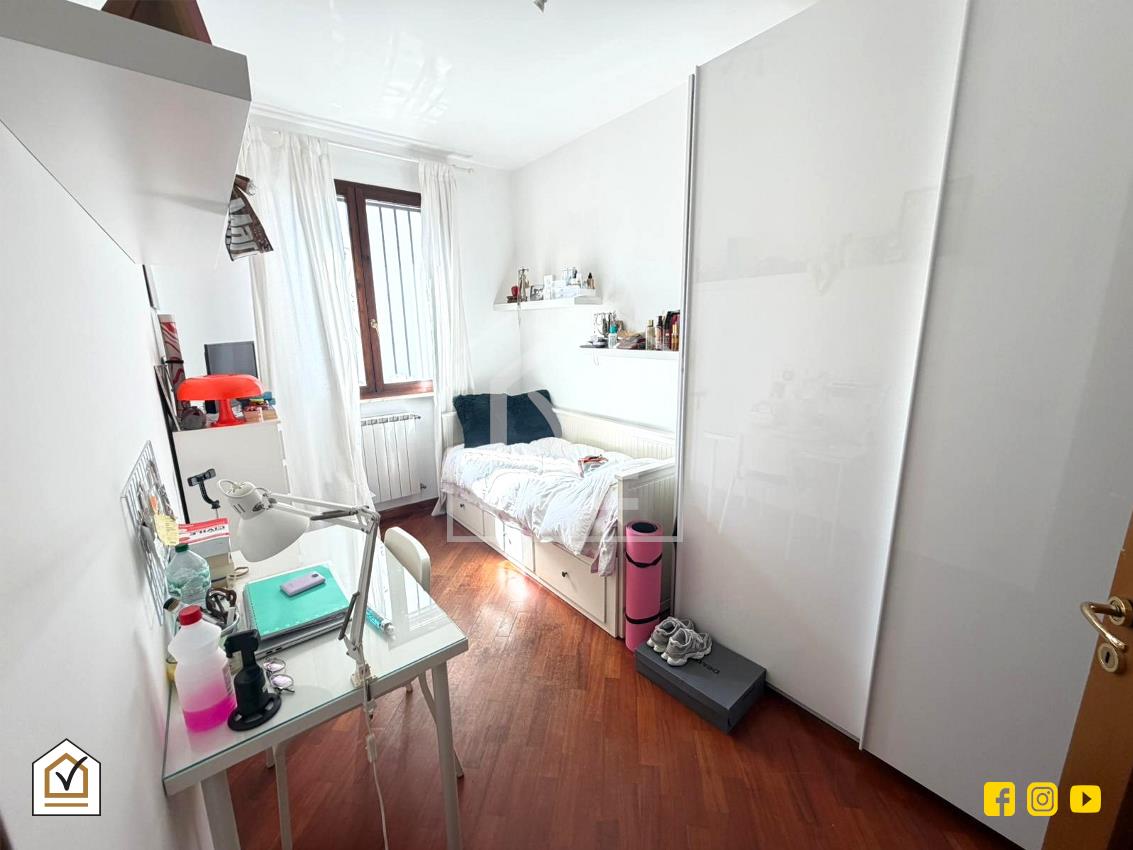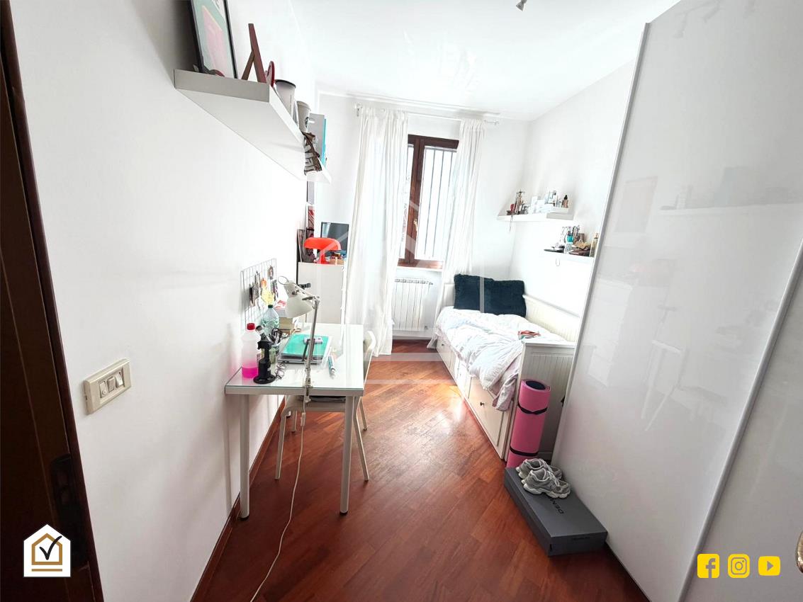 Al piano terra, l’ingresso introduce in un ampio salone, luminoso e accogliente, perfetto per trascorrere piacevoli momenti di relax o per accogliere ospiti in un ambiente elegante e confortevole. Lo stesso livello ospita inoltre un doppio servizio, una cucina funzionale, una camera da letto ideale anche come studio o stanza per gli ospiti, e un box auto interno che garantisce comodità e sicurezza. Punto di forza del piano è sicuramente il meraviglioso giardino di 60 mq, perfetto per ospitare animali da compagnia, cene con amici e parenti senza rinunciare alla riservatezza.