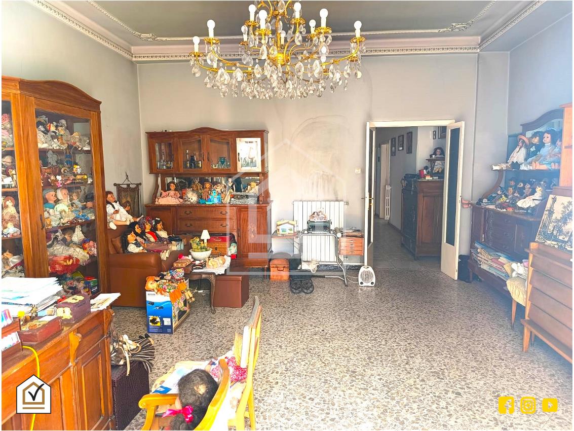 L'immobile è così composto : entrando, sulla sinistra, cucina abitabile con affaccio su balcone interno, a seguire un primo bagno e, sulla destra, un ampio salone con stesso affaccio. Proseguendo, un disimpegno conduce alla zona notte, composta da quattro camere da letto, di cui una matrimoniale, e due con affaccio su balcone fronte corso, ideale per godere della vista privilegiata durante le processioni pasquali. Per concludere, cabina armadio e un secondo bagno.