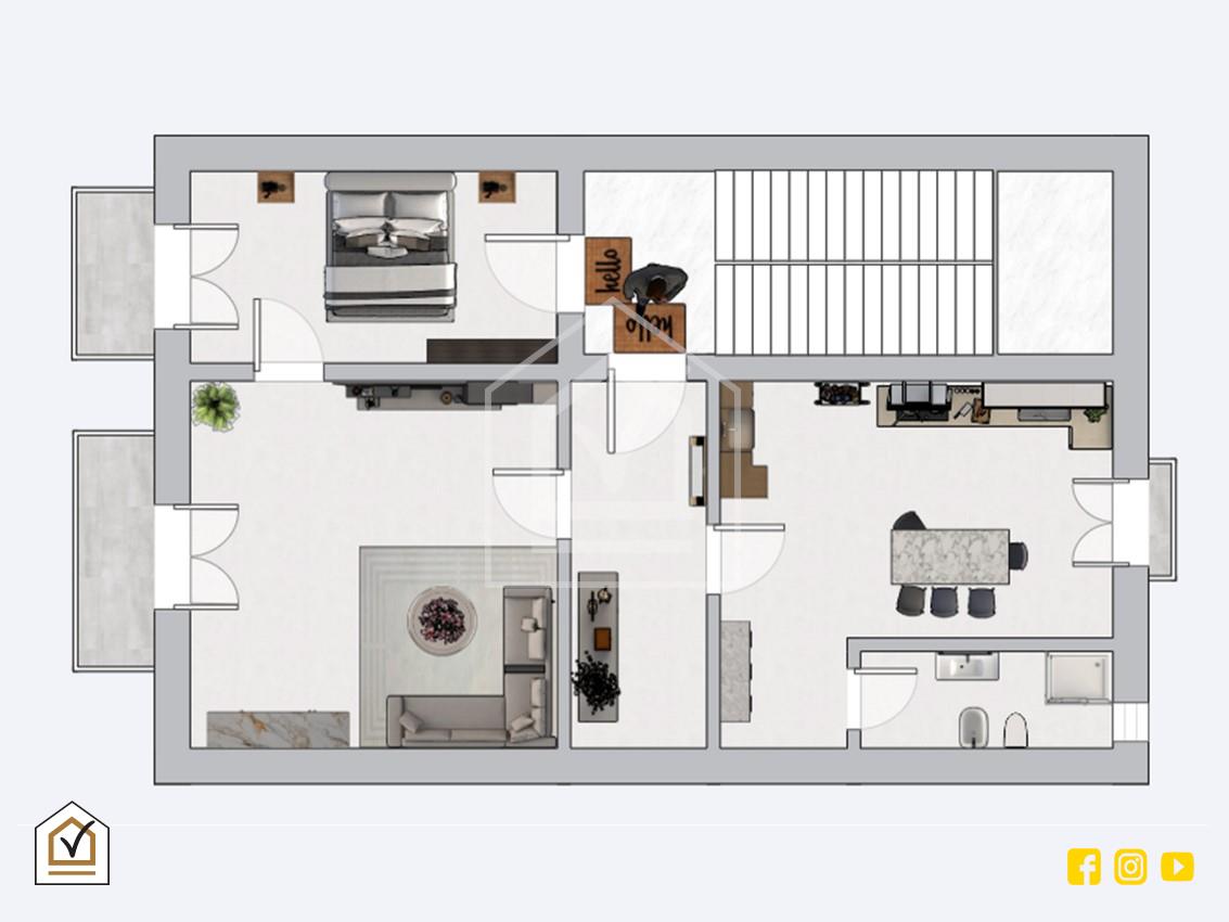 La disposizione degli ambienti è funzionale e ben equilibrata: troviamo un ampio salone luminoso, una comoda camera da letto, una cucina abitabile e un bagno finestrato.