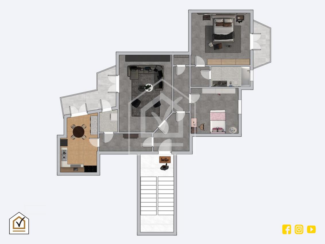 L’abitazione è composta da ingresso, ampio soggiorno, cucina abitabile, due camere da letto, bagno e ripostiglio. Gli ambienti risultano ariosi e funzionali, adatti a soddisfare diverse esigenze abitative.