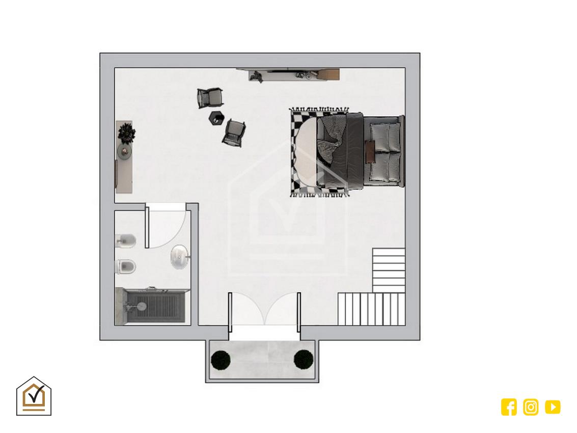 L’ingresso si apre direttamente su un accogliente soggiorno con zona pranzo, ambiente luminoso e ben distribuito. Salendo le scale interne si accede alla zona notte, composta da una camera da letto e bagno. Completa la proprietà un terrazzo, ideale per momenti di relax all’aperto.