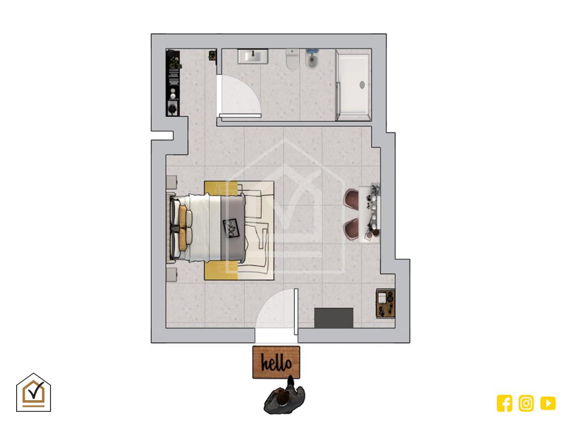 L’appartamento è composto da un unico ambiente funzionale e ben organizzato, con angolo cottura, oltre al rifinito bagno comleto di box doccia. Gli spazi sono ottimizzati per garantire comfort e praticità.