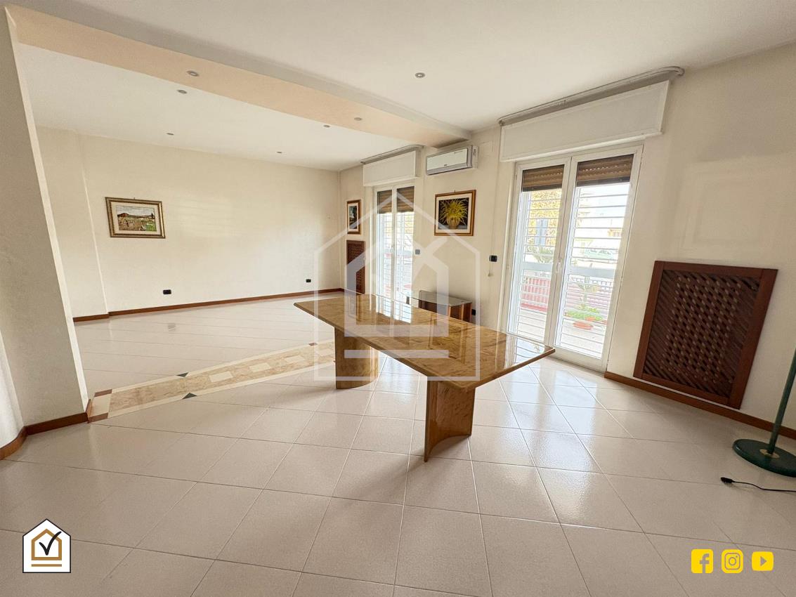 Varcata la soglia, un accogliente disimpegno funge da fulcro centrale della casa, separando con intelligenza la zona di rappresentanza dall’area quotidiana. Il salone doppio è il vero protagonista della zona giorno: un ambiente vasto e inondato di luce naturale, che si estende verso l’esterno grazie all’affaccio diretto sul balcone prospiciente Via Magna Grecia. Sul lato opposto, il tinello pranzo offre un’atmosfera conviviale e riservata, collegandosi armoniosamente alla veranda condonata con cucinino, un angolo funzionale e protetto che ottimizza ogni centimetro della casa. La zona notte, raccolta e silenziosa, ospita una spaziosa camera matrimoniale e un indispensabile ripostiglio, ideale per mantenere l’ordine in ogni stagione. A completare la soluzione troviamo il bagno padronale finestrato e il bagno di servizio.