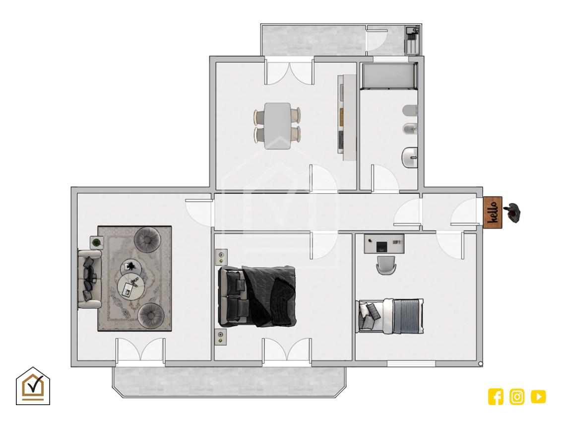 L’appartamento si apre su un comodo ingresso nel disimpegno che distribuisce gli ambienti della casa. Proseguendo troviamo la cucina con accesso al balcone e il bagno padronale. La zona giorno è composta da un ampio salone luminoso con affaccio, mentre la zona notte comprende una cameretta finestrata e una spaziosa camera da letto matrimoniale con affaccio.