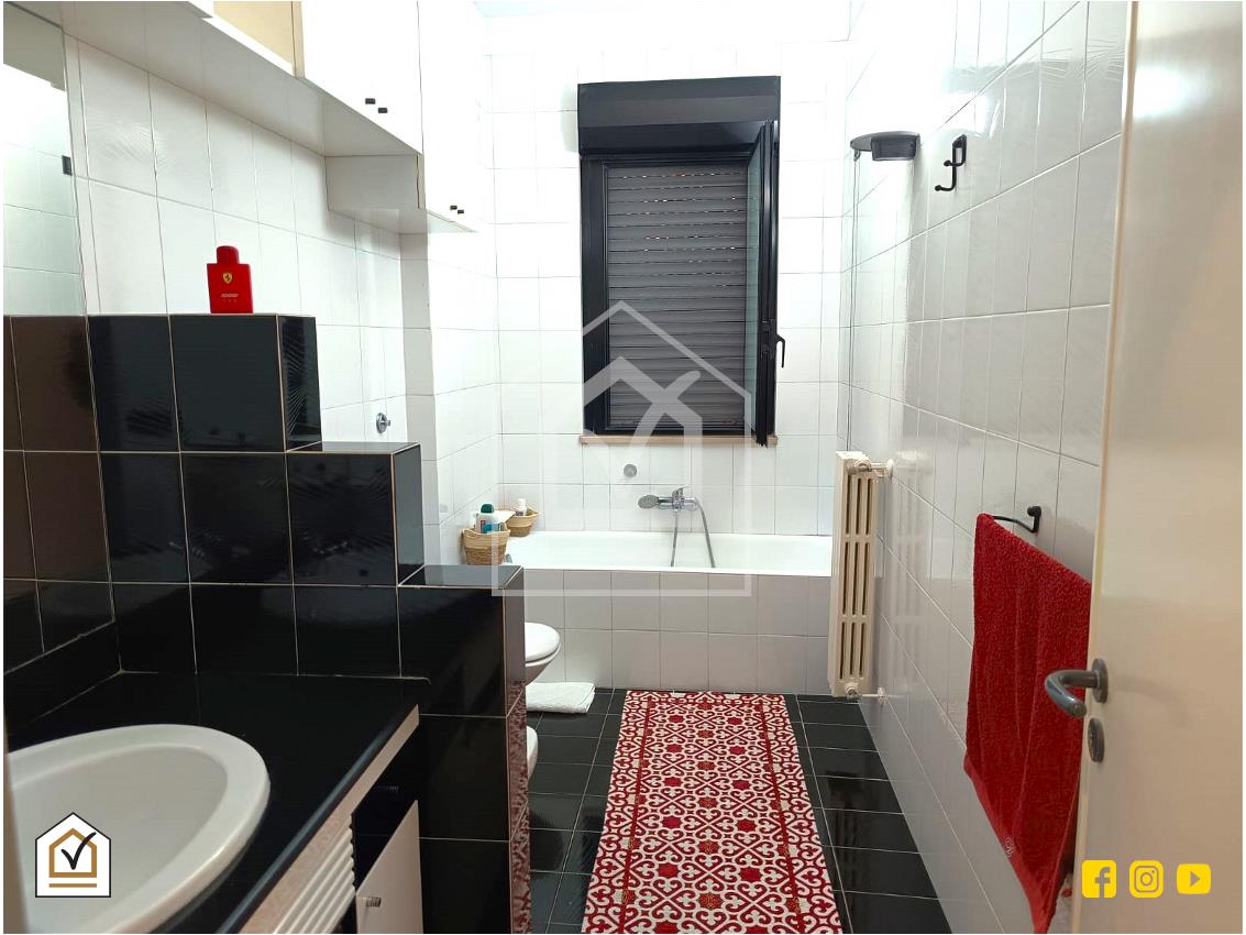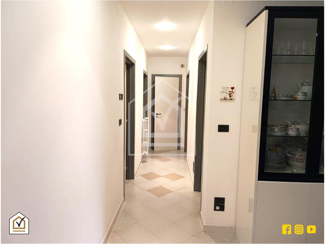 L'appartamento si apre su un'ampia zona living composta da salone con doppia finestra, che permette l'accesso all'esterno con affaccio verso ovest, e cucina abitabile con affaccio verso est. Segue la zona notte con tre camere da letto, di cui una matrimoniale con finestra, e due camerette con affaccio sul balcone. Per completare, bagno finestrato con sanitari a pavimento e ripostiglio.