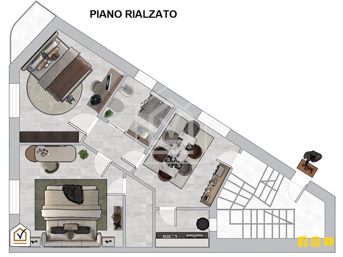 Il piano rialzato, cuore luminoso della casa grazie all'esposizione angolare, è organizzato per la massima praticità familiare. Include una cucina separata, una lavanderia dedicata e una zona notte con due camere, tra cui la matrimoniale servita da una cabina armadio su misura. Salendo al primo piano, si trova uno spazio versatile e autonomo con cameretta, bagno e angolo cottura di servizio, il cui valore è impreziosito da un ampio terrazzo angolare privato e videosorvegliato, perfetto come estensione esterna della zona living.