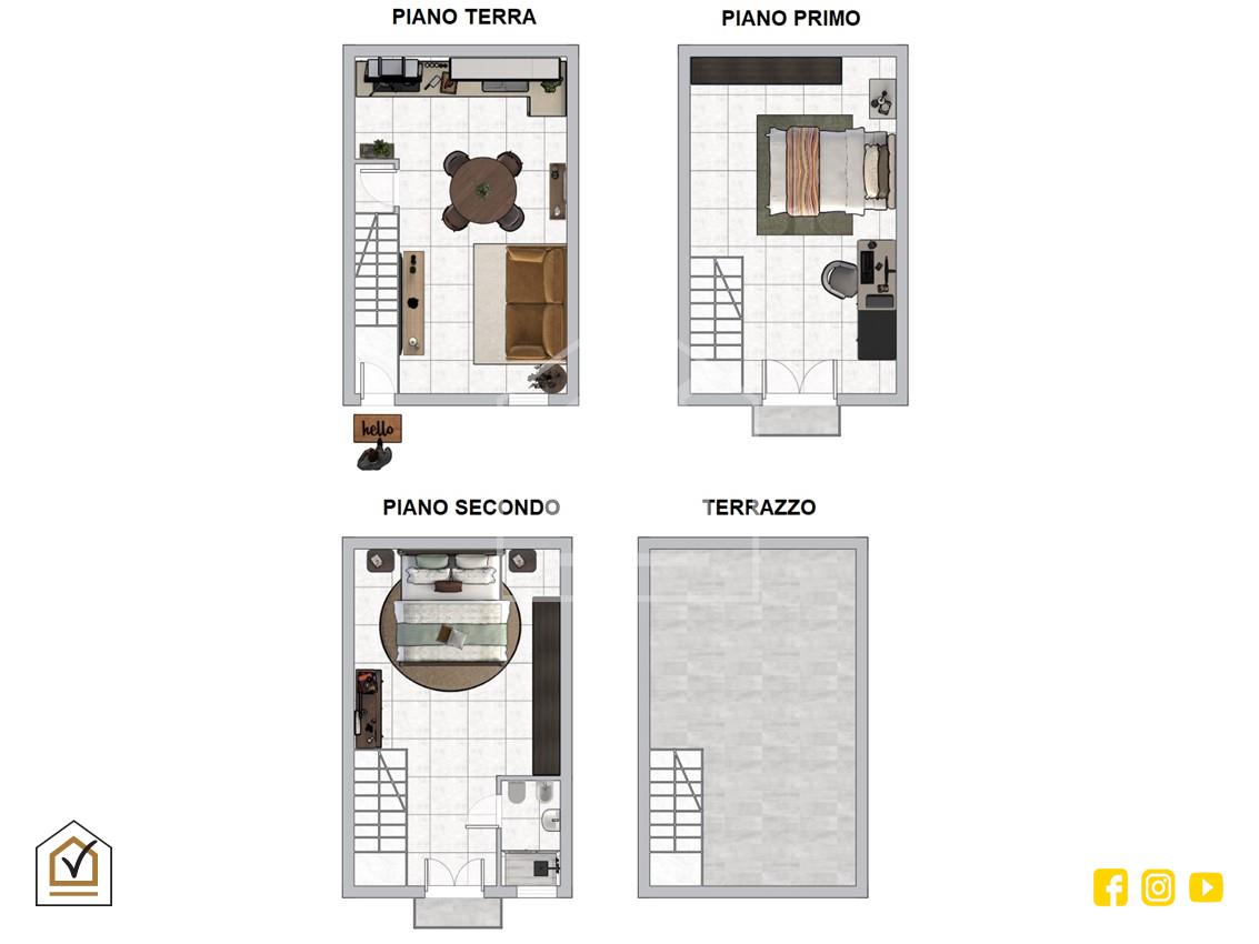 L'abitazione, in discreto stato interno, si sviluppa su più livelli: il piano terra ospita un’accogliente zona giorno open space con angolo cottura e ripostiglio; la zona notte si distribuisce ai piani superiori, con una cameretta al primo piano e una spaziosa camera matrimoniale con bagno finestrato al secondo piano, inoltre entrambi gli ambienti godono di affacci su balconi privati.