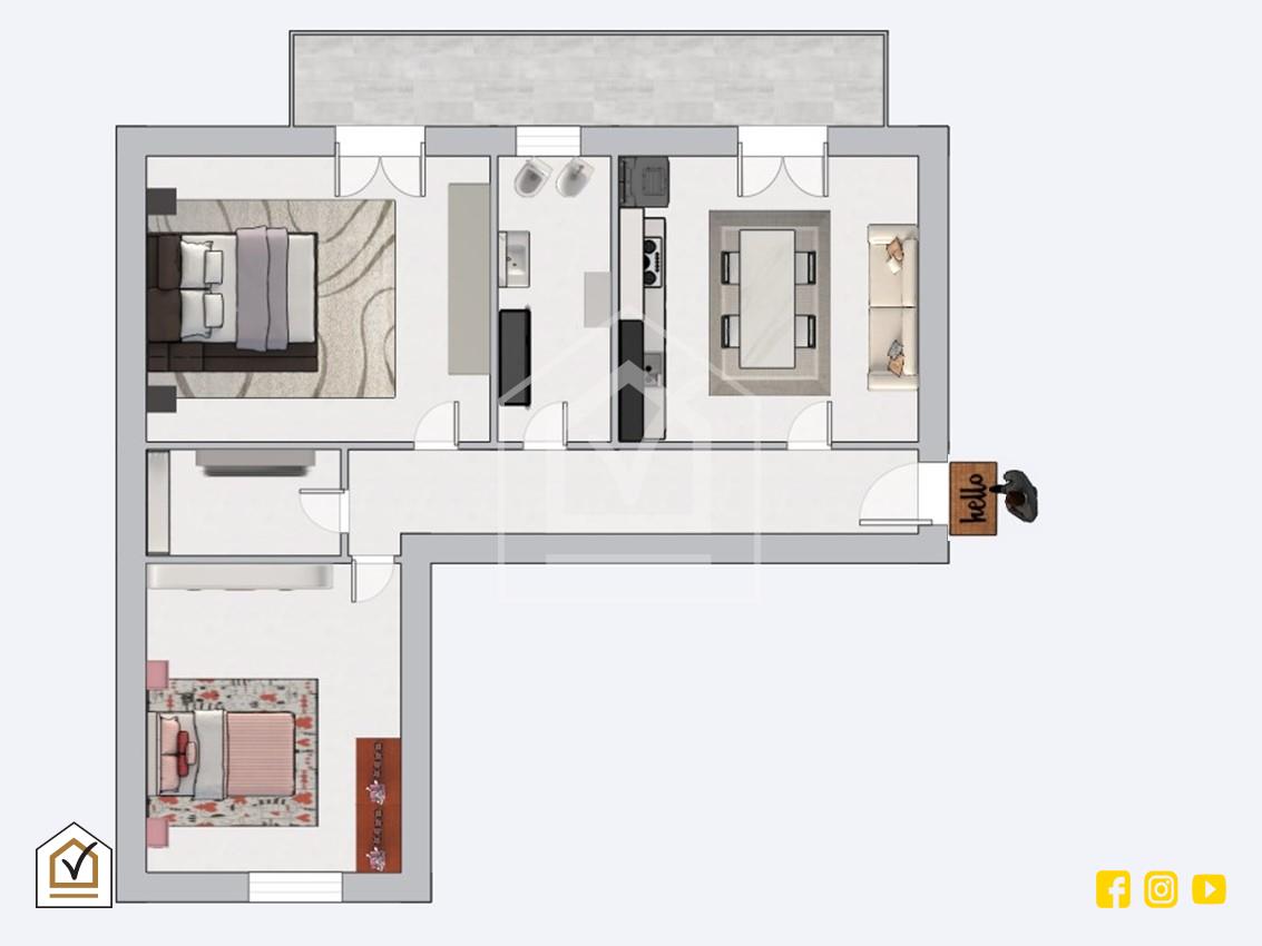 La soluzione si compone di una comoda cucina abitabile, due spaziose camere da letto, bagno padronale con finestra e pratico ripostiglio, offrendo ambienti funzionali e ben distribuiti.