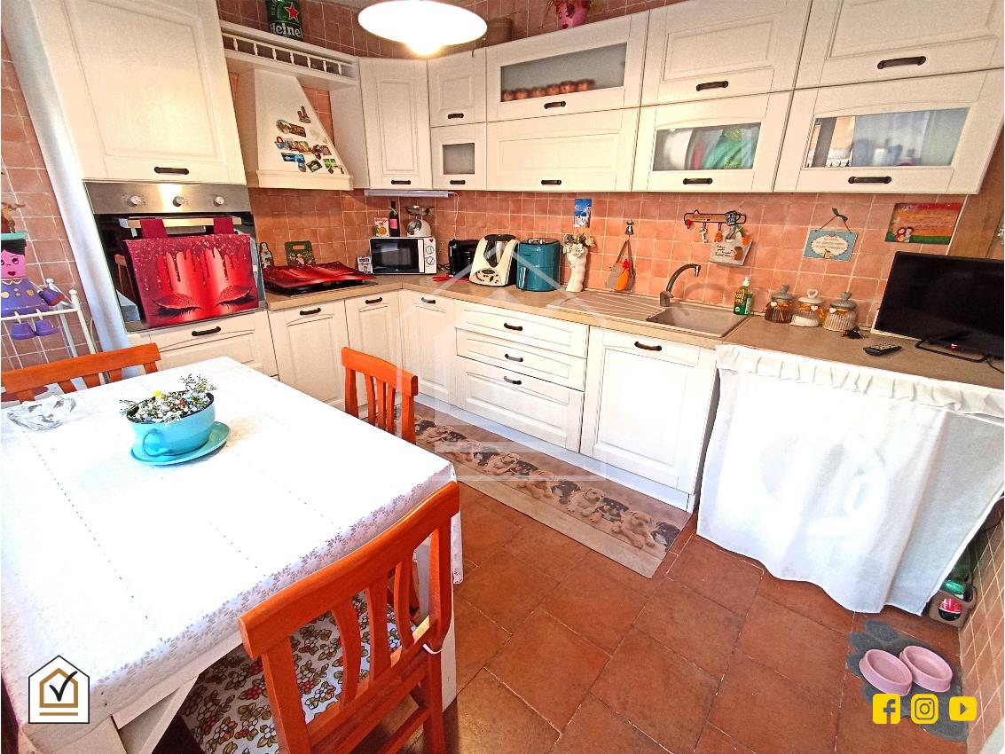 Internamente si compone di luminoso salone, disimpegno, cucina abitabile, camera matrimoniale e per concludere bagno padronale con vasca .