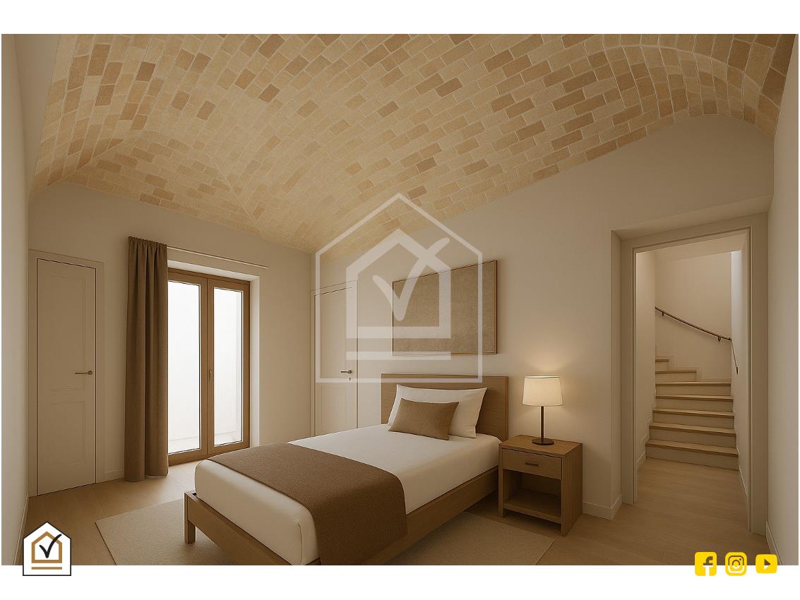 Al secondo piano troviamo spaziose camere da letto, anch’esse impreziosite da volte a botte in cotto, e un ulteriore bagno a servizio del piano. Ambienti confortevoli, perfetti per accogliere famiglia e ospiti.