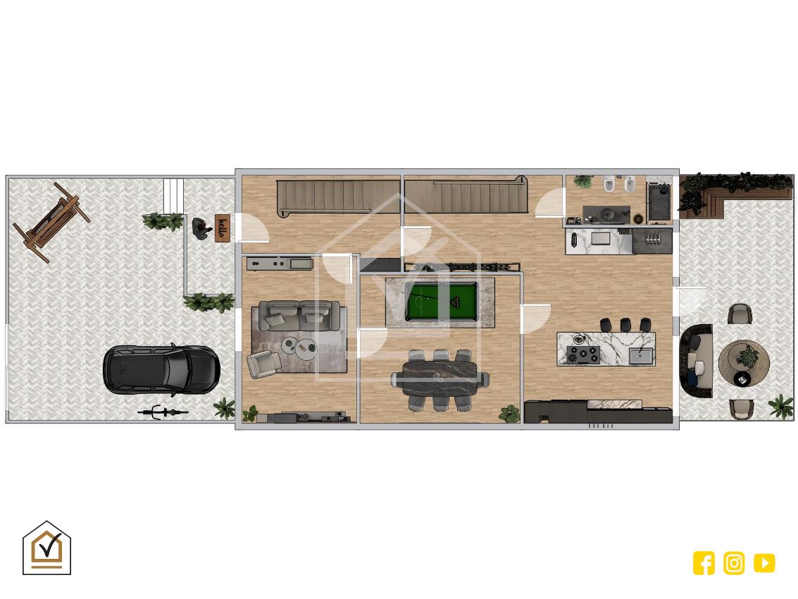 Il piano seminterrato ospita una grande tavernetta, uno spazio versatile e riservato che può essere utilizzato come zona relax, studio, sala hobby o ulteriore ambiente conviviale.