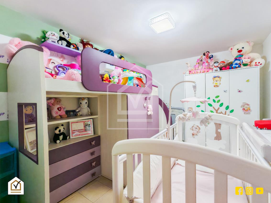 La zona notte invece è dotata di camera da letto matrimoniale, cameretta e altro bagno.