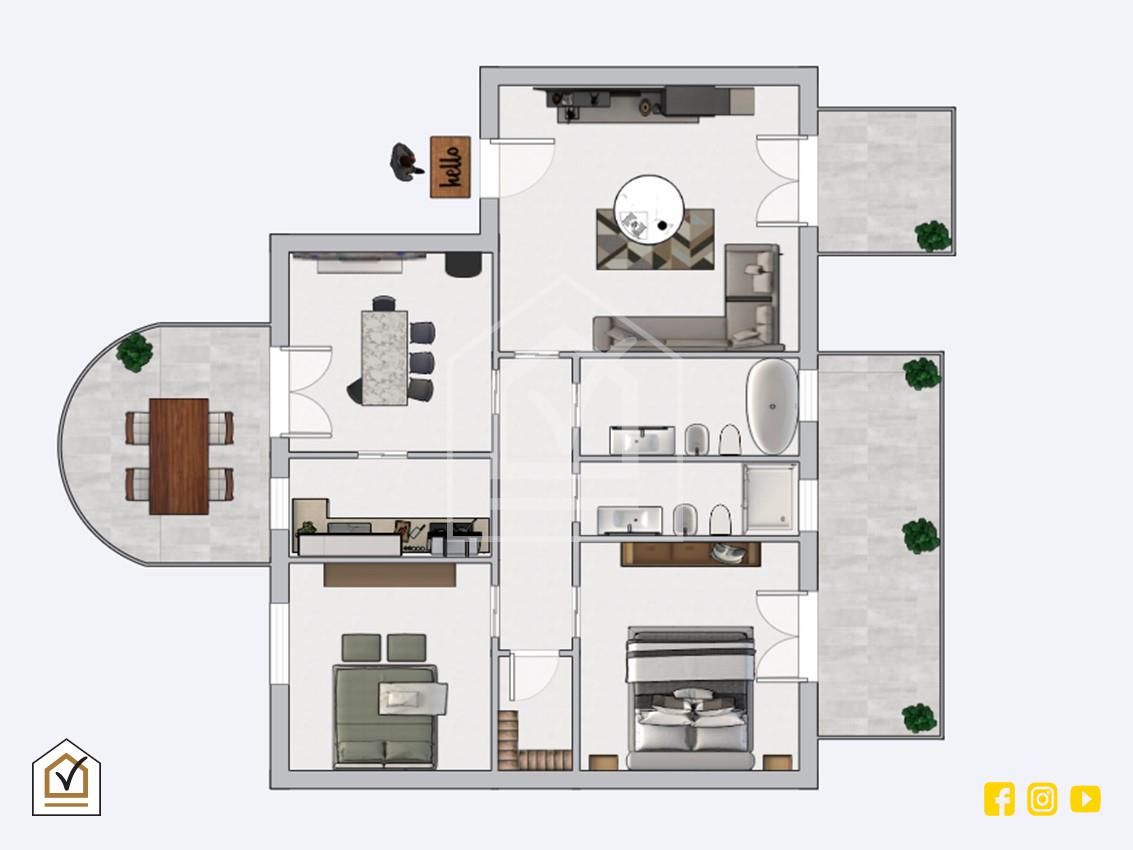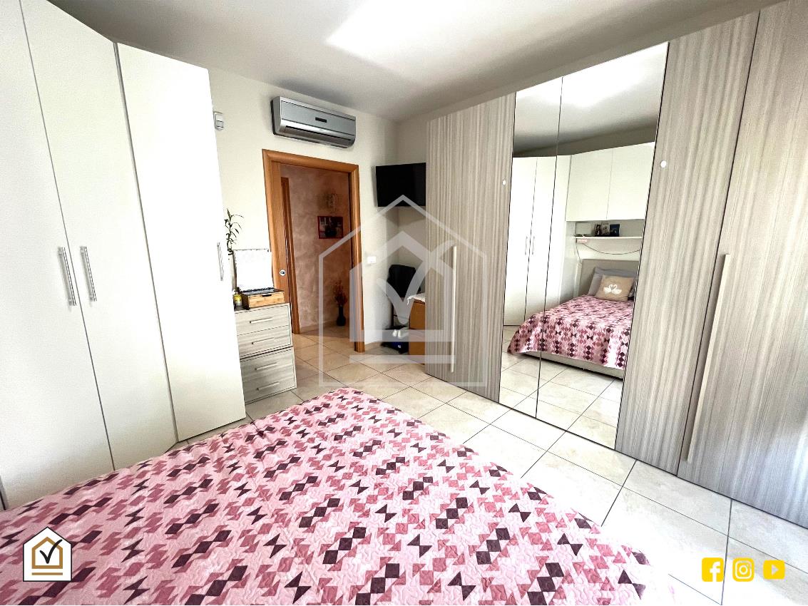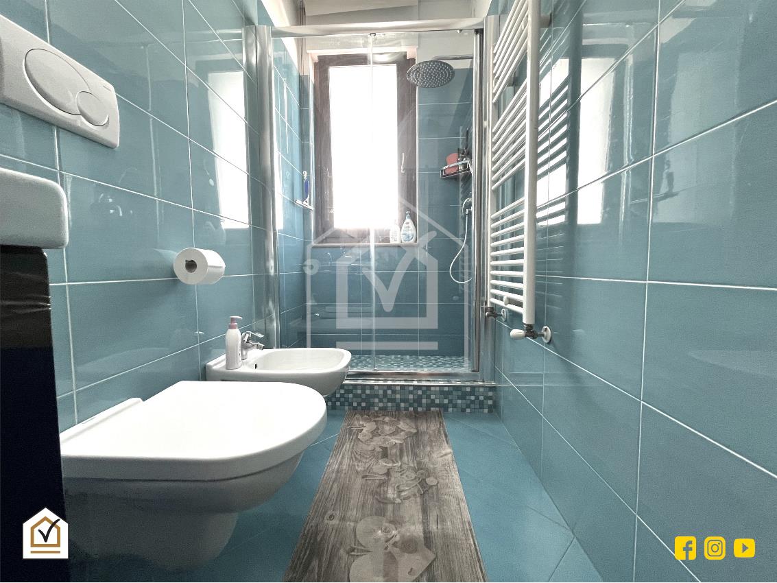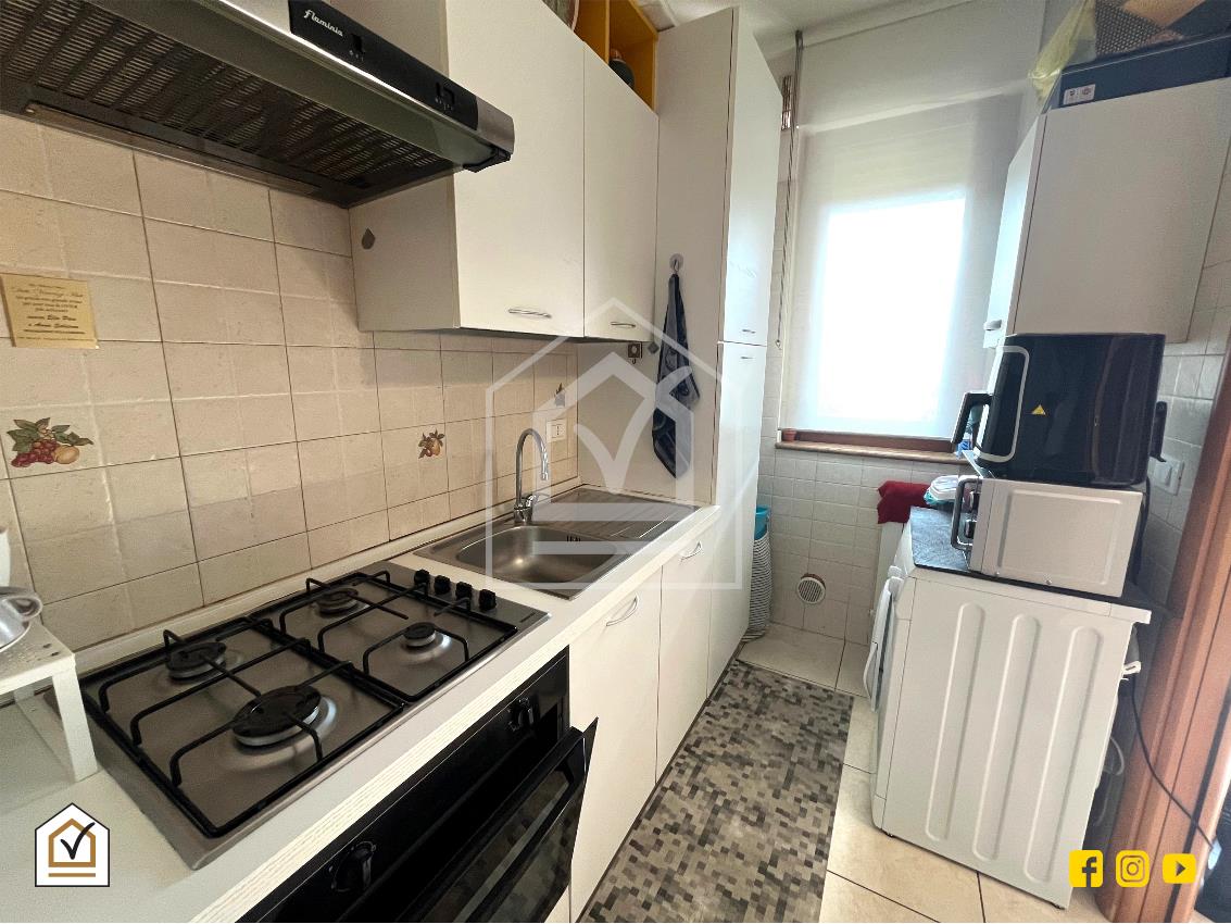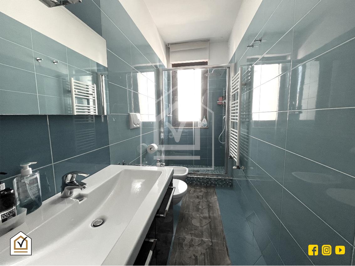 La luminosa abitazione è ubicata al secondo piano ed è comodamente composta da ingresso nel salone a vista, cucina abitabile con cucinino finestrato, disimpegno con zona notte con due camere da letto, due bagni e ripostiglio.