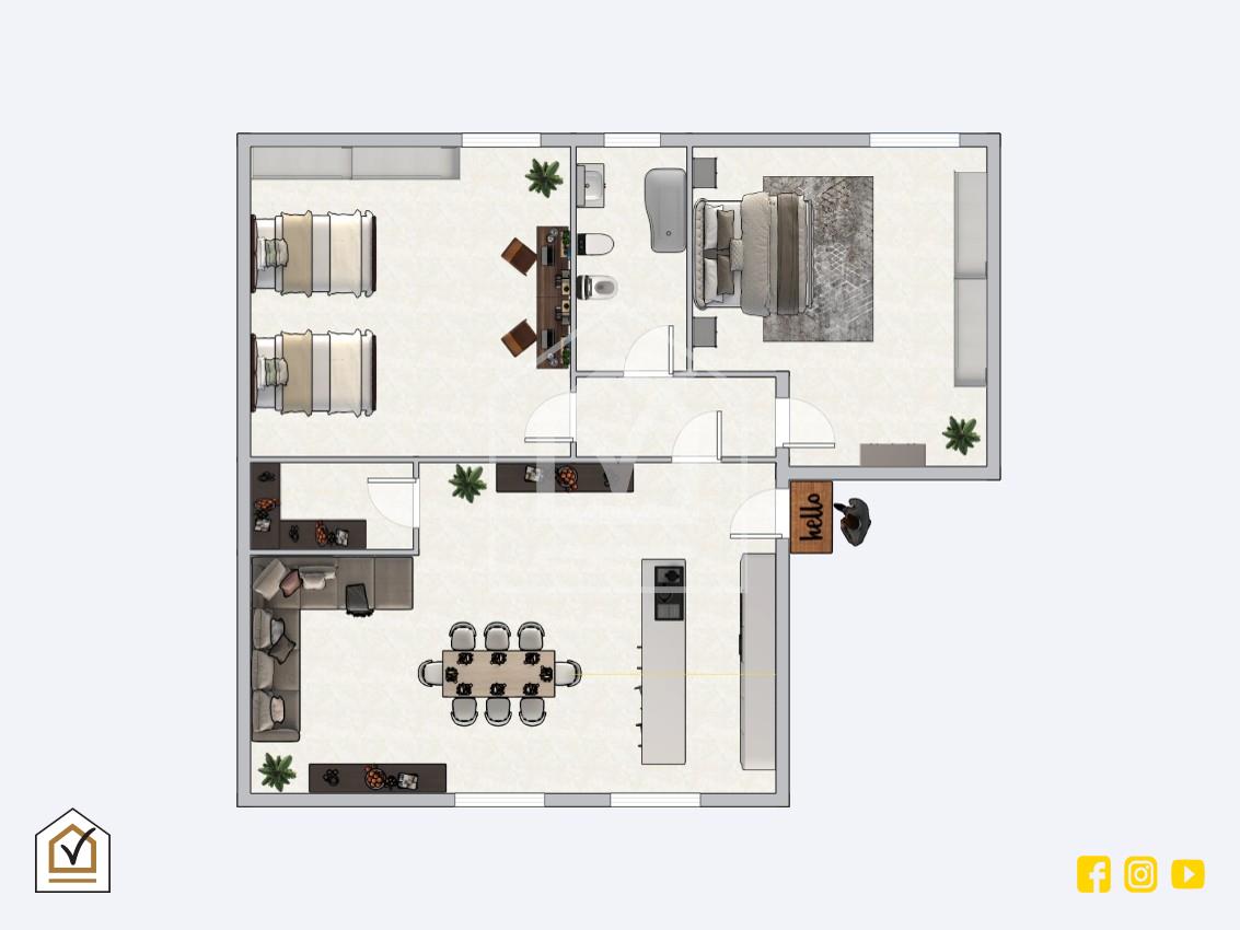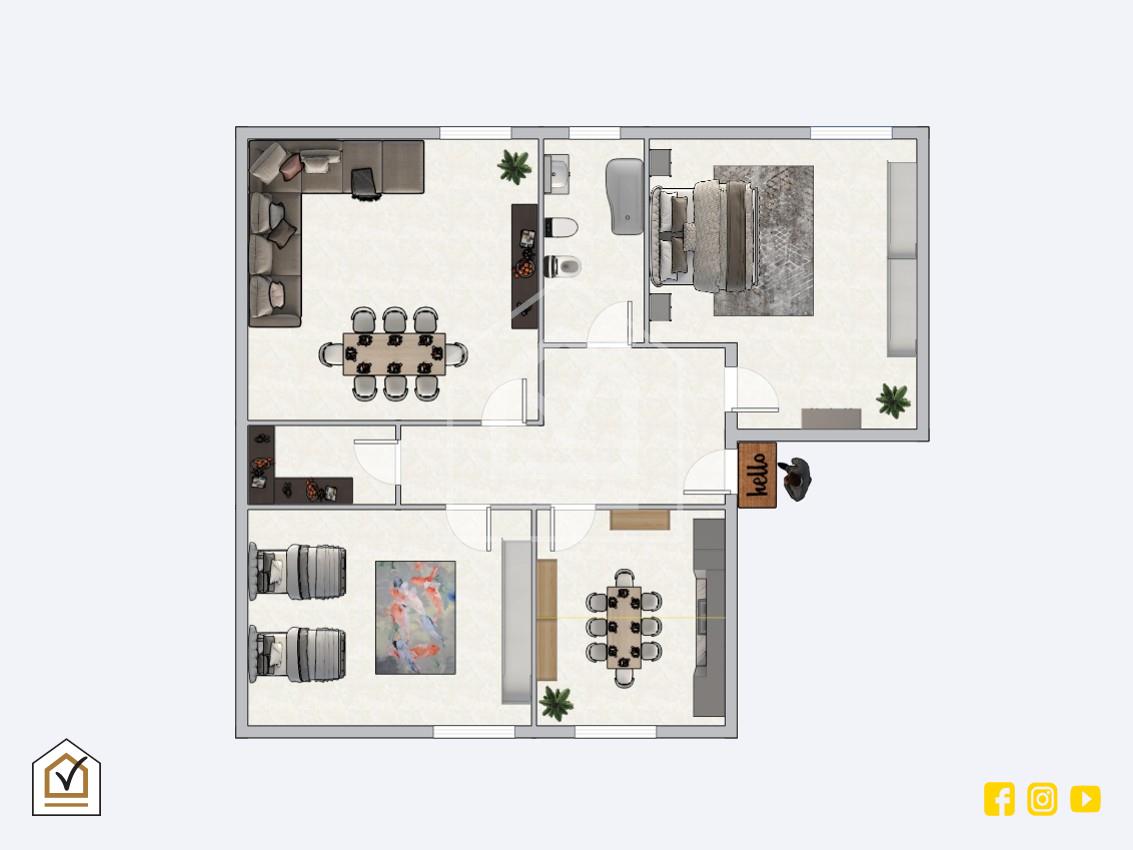 Grazie alla sua pianta regolare è possibile, apportando alcune modifiche, ricreare una zona living in ambiente unico; soluzione ideale per tutti coloro che desiderino abitare in una casa studiata nei minimi dettagli e in base alle proprie esigenze. (si veda planimetria 2) L'appartamento è dotato di comodo posto auto di proprietà all'interno del cortile condominiale.