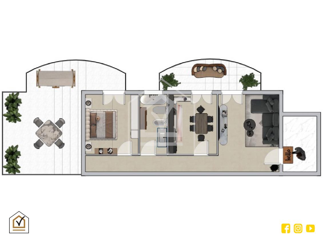La soluzione è collocata al 7° piano in stabile dotato di 2 ascensori, e si distribuisce internamente come descritto: al nostro ingresso troviamo l'ampia zona giorno con accesso al primo dei due ampi balconi; di seguito, incamminando il disimpegno, troviamo la luminosa cucina abitabile, anch'essa con accesso allo spazio esterno, le 2 camere da letto, il bagno padronale finestrato completo di vasca da bagno .