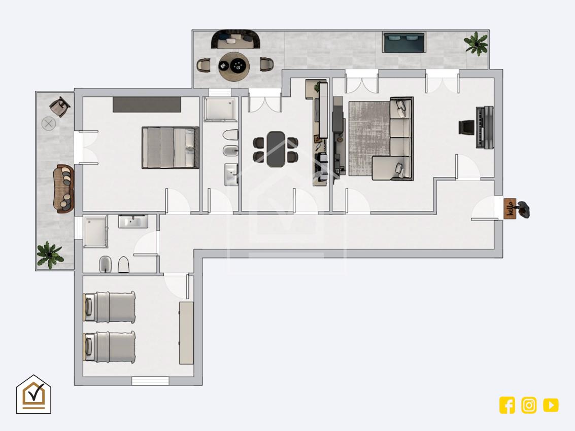 A completare il tutto, l’appartamento gode di una tripla esposizione, un valore aggiunto che esalta ulteriormente la vivibilità degli spazi, migliorando la qualità dell’aria e contribuendo a mantenere una temperatura interna gradevole in ogni stagione.