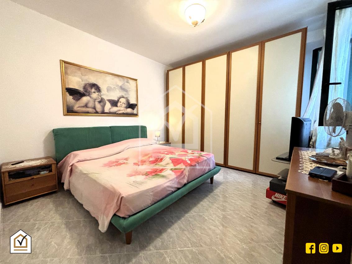 Attraverso un disimpegno si accede alla zona notte, dove la camera matrimoniale si presenta spaziosa e luminosa, perfetta per accogliere una grande armadiatura o una cabina armadio, mantenendo comunque un’ottima vivibilità. La cameretta, anch’essa finestrata, è ideale come stanza per bambini, studio o camera ospiti, offrendo versatilità e comfort. Completa la zona notte il bagno padronale con vasca.