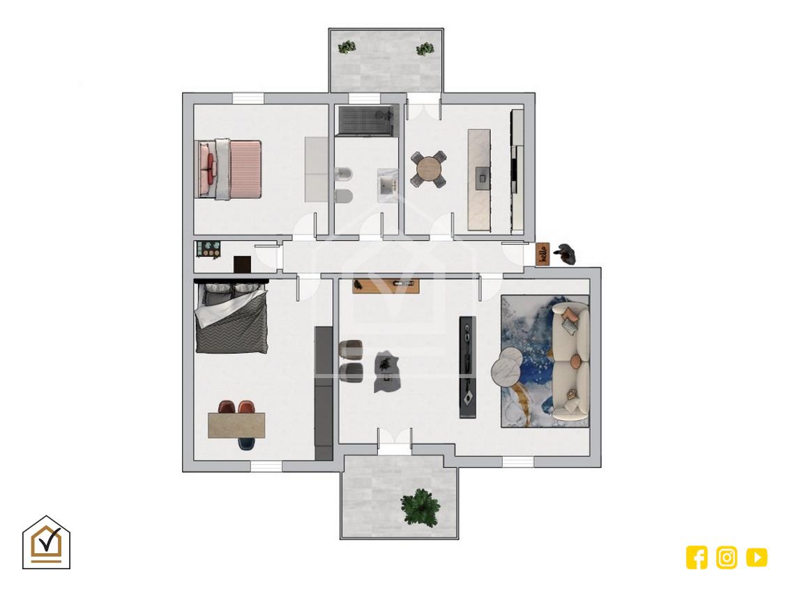 L’immobile si distingue per la sua ottima esposizione che garantisce luce naturale durante tutto l’arco della giornata, grazie anche ai due ampi balconi che circondano la casa e offrono piacevoli spazi esterni da vivere.