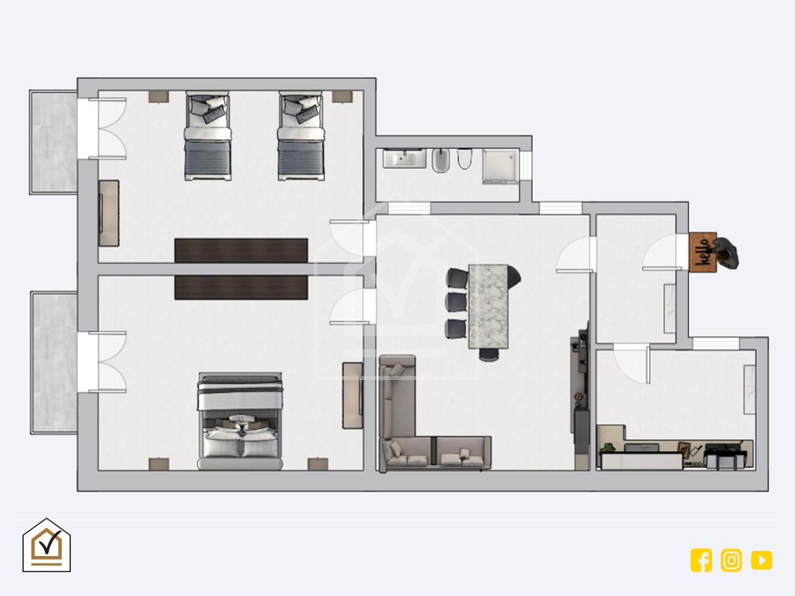 L’immobile si trova al terzo piano di uno stabile con ascensore ed è composto da un comodo ingresso su salone, due camere da letto, un cucinotto e un bagno.