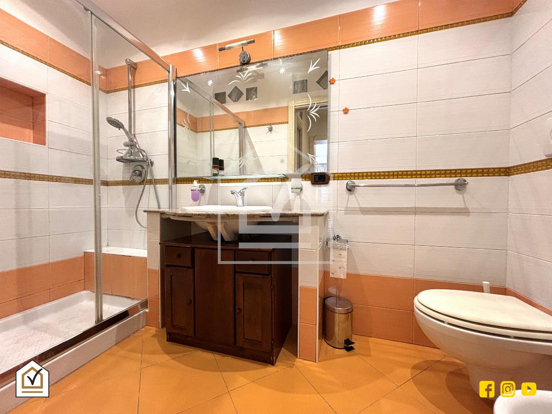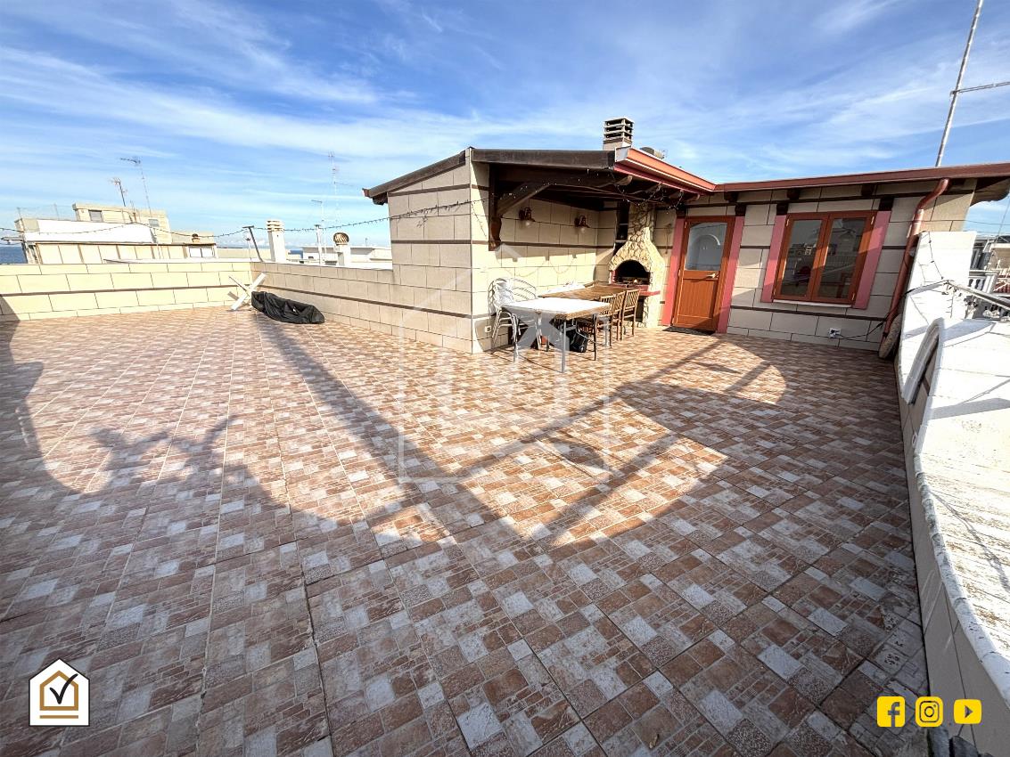 All’esterno, una scala conduce al lastrico solare attrezzato con cucinino e bagno, da cui si può ammirare una splendida vista mare, un valore aggiunto che rende questa proprietà davvero unica.