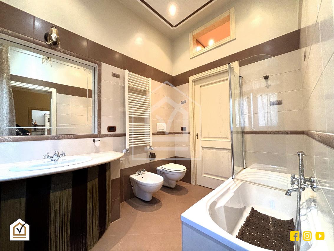 La zona notte ospita una spaziosa camera matrimoniale, accompagnata da un elegante bagno padronale con vasca, ideale per concedersi momenti di relax.