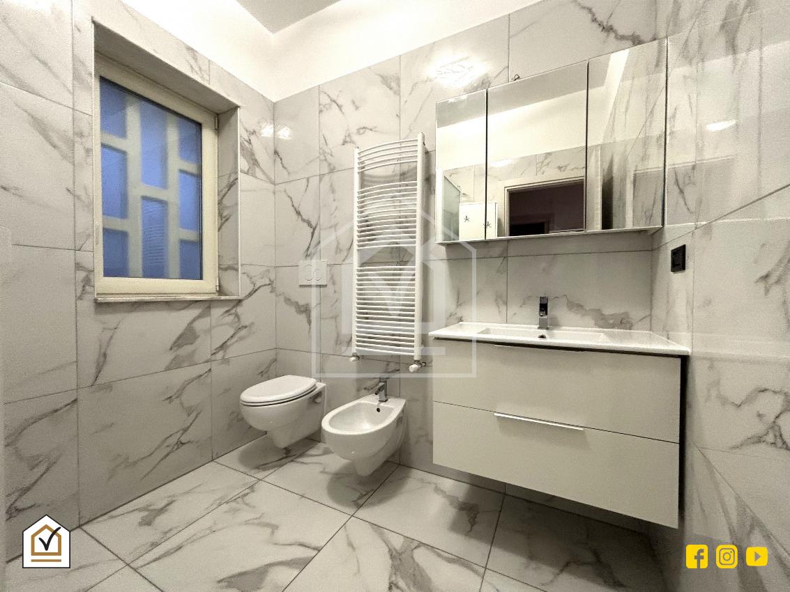 Sulla destra del disimpegno è collocato il bagno padronale finestrato, completamente ristrutturato e dotato di aerazione naturale.