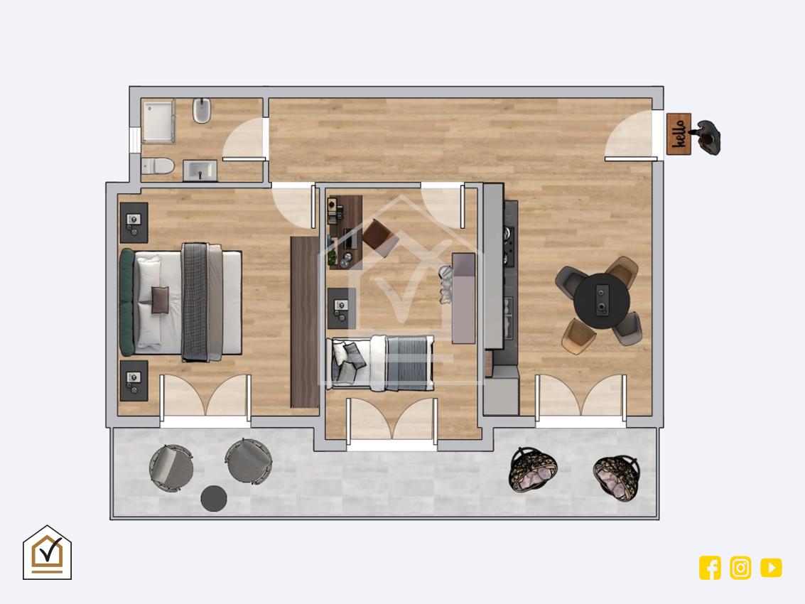L’immobile, completamente ristrutturato nel 2015, si distingue per le sue finiture moderne ed eleganti. L’ingresso si apre su un accogliente soggiorno pranzo, perfetto per vivere momenti di relax e convivialità. Proseguendo nel disimpegno troviamo la cameretta, la camera matrimoniale e il bagno padronale. Tutti gli ambienti, ad eccezione del bagno, godono dell’accesso diretto all’ampio balcone, che avvolge la casa di luce naturale e diventa uno spazio ideale per colazioni all’aperto o piacevoli momenti di pausa.