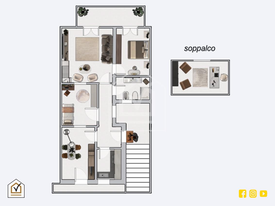 L'immobile si presenta in buone condizioni interne ed estrerne ed è così composto : cucina e sala pranzo illuminate dalla presenza di un balcone verandato che affaccia internamente su Seconda Strada Privata Borrelli ; due comode camere da letto, un bagno e un ampio salone con soppalco condonato, il tutto valorizzato dalla presenza di un balcone che affaccia direttamente sulla via principale.