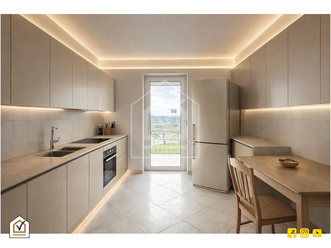 L’ingresso conduce a un salone ampio e arioso, perfetto come spazio di rappresentanza e convivialità, con uscita diretta sul balcone principale. La cucina abitabile, comoda e ben organizzata, rappresenta il fulcro della vita domestica e dispone di un affaccio esterno che ne valorizza ulteriormente la funzionalità.