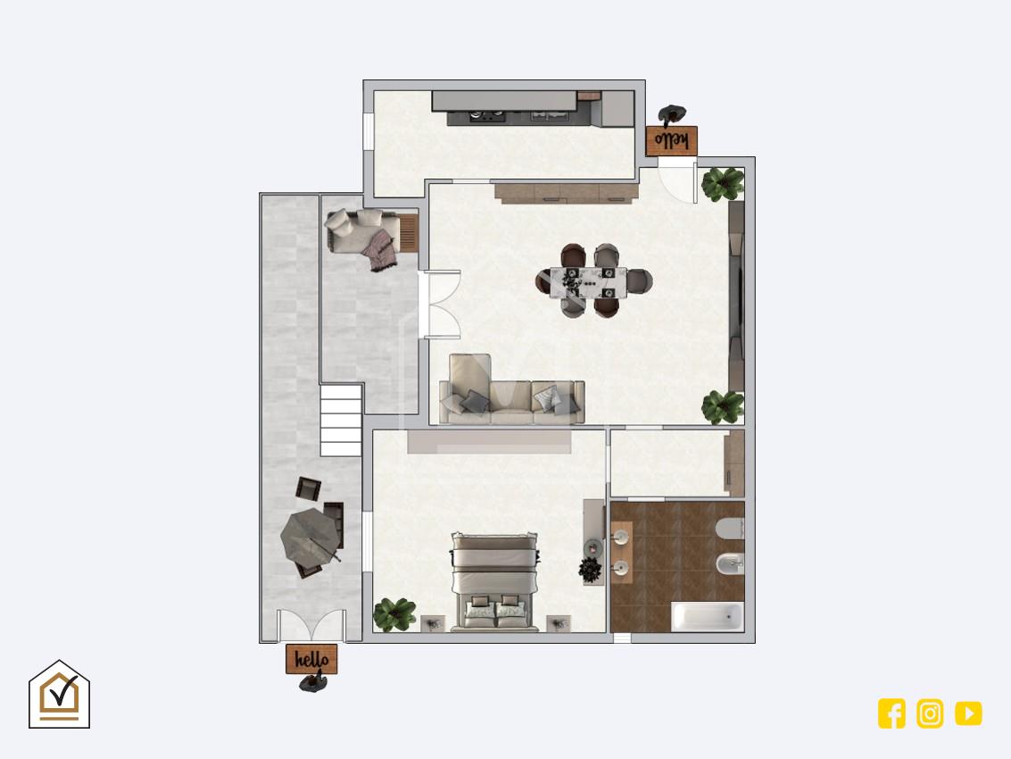 Gli ambienti interni sono ben distribuiti e funzionali: l’ingresso conduce a un confortevole salone, separato dal cucinino, mentre la zona notte è composta da una camera da letto accogliente e da un bagno moderno, rifinito con gusto. Le finiture e lo stato manutentivo garantiscono un elevato livello di comfort abitativo.