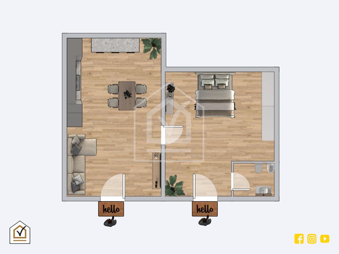 L’ingresso al piano terra colpisce subito per la presenza di due accessi indipendenti, un dettaglio di grande valore che consente una gestione flessibile degli spazi. Qui troviamo un ampio ambiente unico, una camera e un bagno, ideale come area comune, reception, zona colazioni oppure come prima unità abitativa completamente autonoma.
