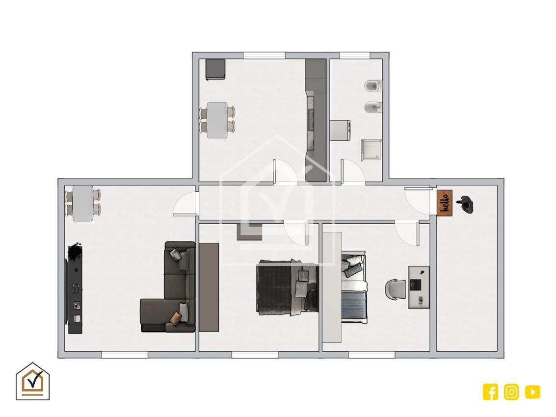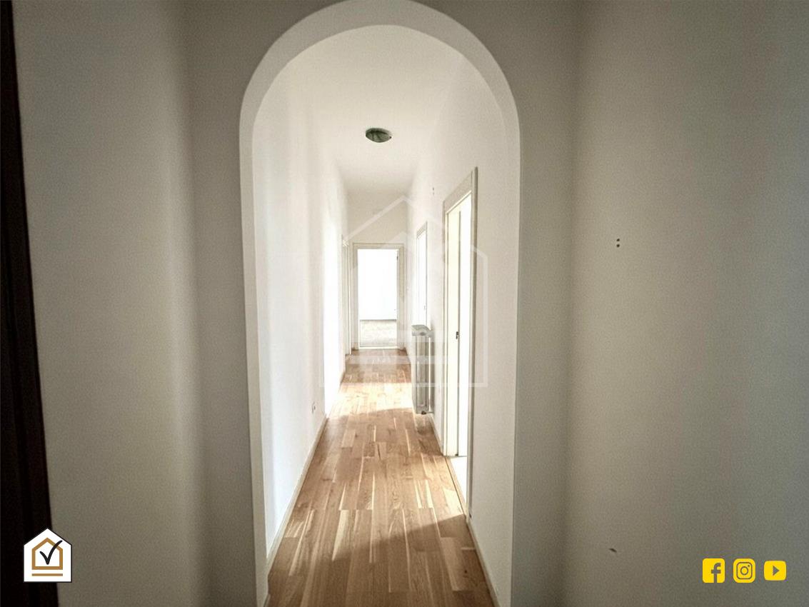 L’immobile, libero e subito disponibile, si apre su un comodo disimpegno che conduce, sulla destra, alla cucina e al bagno padronale, mentre sulla sinistra troviamo ampio salone, camera matrimoniale e una cameretta.