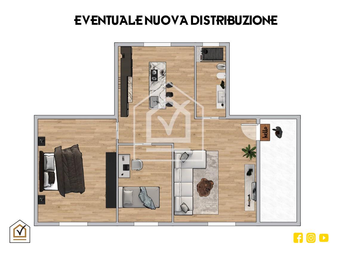L'immobile offre interessanti potenzialità di personalizzazione: con interventi semplici e mirati è infatti possibile realizzare una disposizione più moderna e in linea con le esigenze abitative contemporanee.