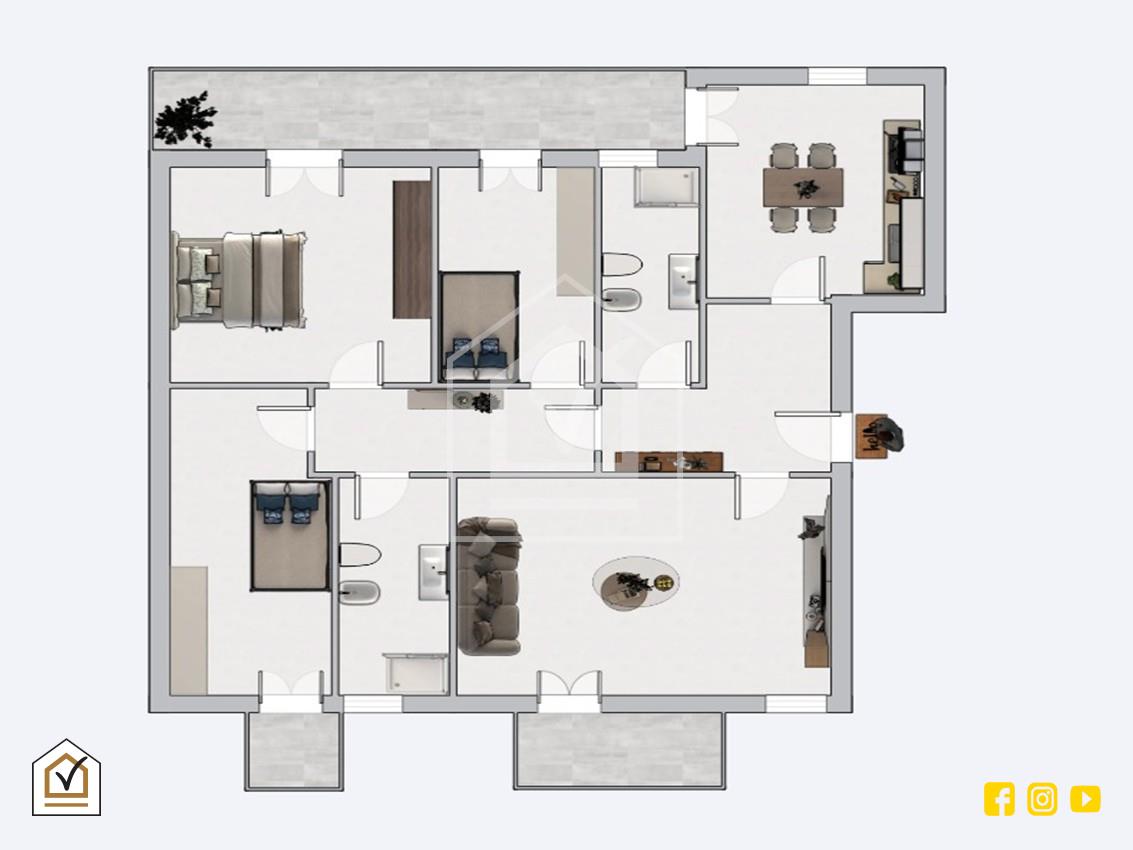 L’immobile sviluppa una superficie di 114 mq commerciali ed è composto da 4 vani + 2 accessori, con ambienti ampi, ben distribuiti e facilmente personalizzabili. La doppia esposizione rappresenta uno dei principali punti di forza della soluzione, garantendo un’eccellente luminosità naturale durante tutto l’arco della giornata e una piacevole ventilazione trasversale.