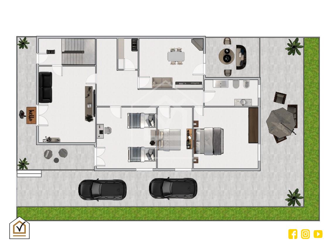 Internamente l’abitazione si apre su un ampio e luminoso salone con affaccio sul patio e impreziosito da un caminetto che dona calore e carattere all’ambiente. Proseguendo tramite disimpegno si accede alla cucina abitabile, anch’essa dotata di caminetto e con affaccio su un secondo patio interno, spazio riservato e funzionale, oltre a un comodo ripostiglio. La zona notte è ben distribuita e comprende due spaziose camere matrimoniali e una cameretta, tutte finestrate, oltre al bagno padronale con vasca e finestra.