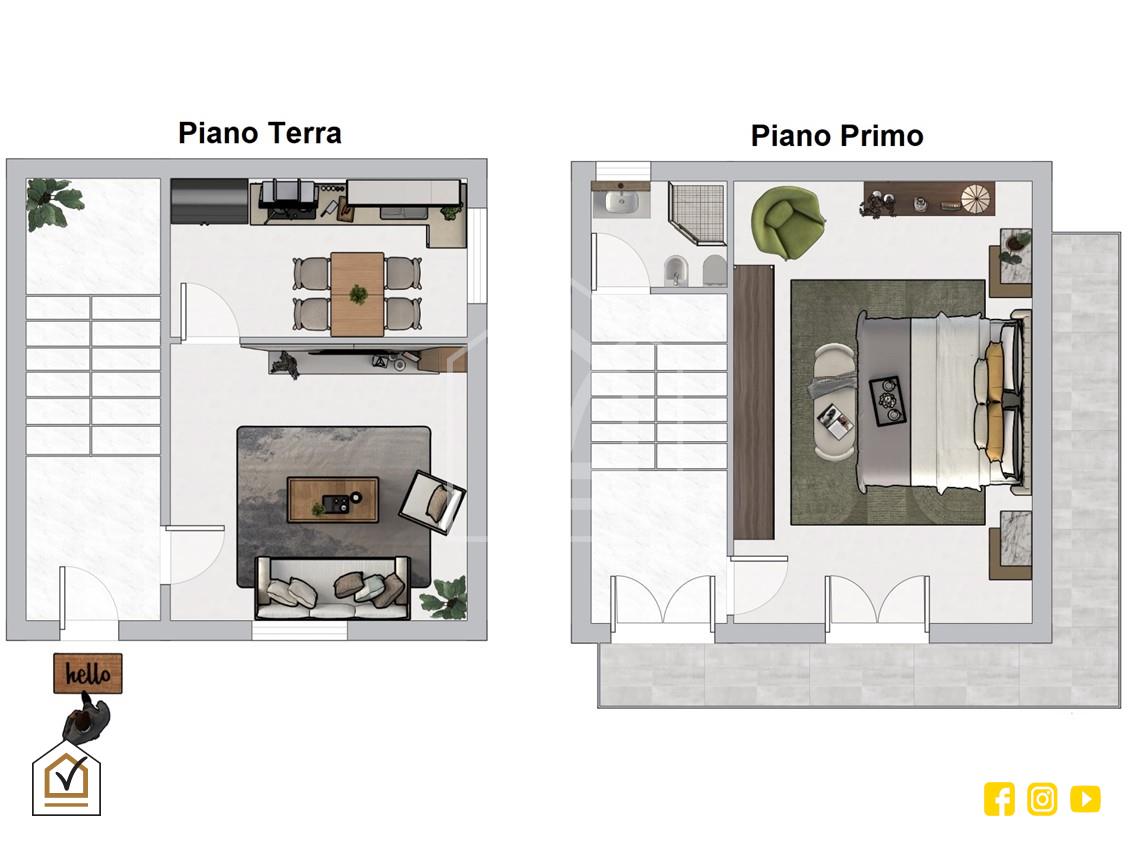 Distribuita su due livelli per una superficie interna complessiva di circa 80 mq, la casa accoglie al piano terra una luminosa zona giorno con soggiorno e cucinino abitabile, ambienti caldi e autentici che donano personalità e senso di accoglienza. Il primo piano ospita una spaziosa camera matrimoniale con affaccio su balcone angolare, ideale per godere di luce naturale durante tutta la giornata, oltre a bagno padronale finestrato. A completare la proprietà, il vano tecnino e il lastrico solare di esclusiva proprietà, spazi preziosi da trasformare in aree relax e zone conviviali.