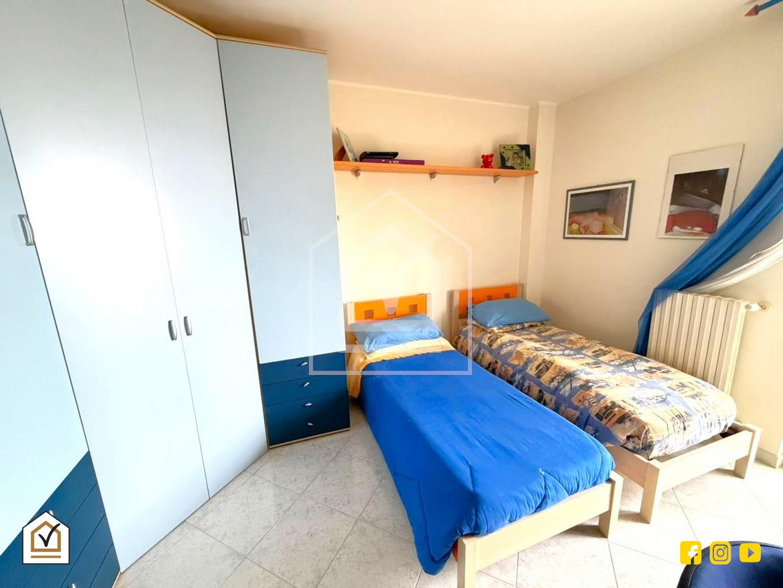 La zona notte è composta da una camera da letto spaziosa e una cameretta, attualmente pensata per due bambini, che offre spazi ben distribuiti e luminosi, e da un bagno funzionale e facilmente accessibile da tutti gli ambienti. A completare la proprietà è presente un comodo box auto, mentre nella zona comune dello stabile è disponibile ulteriore parcheggio con posti auto liberi, garantendo praticità e comfort anche agli ospiti.