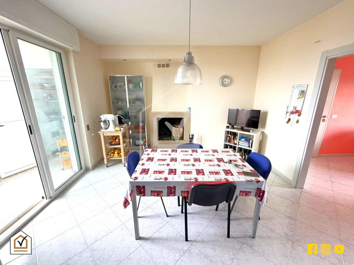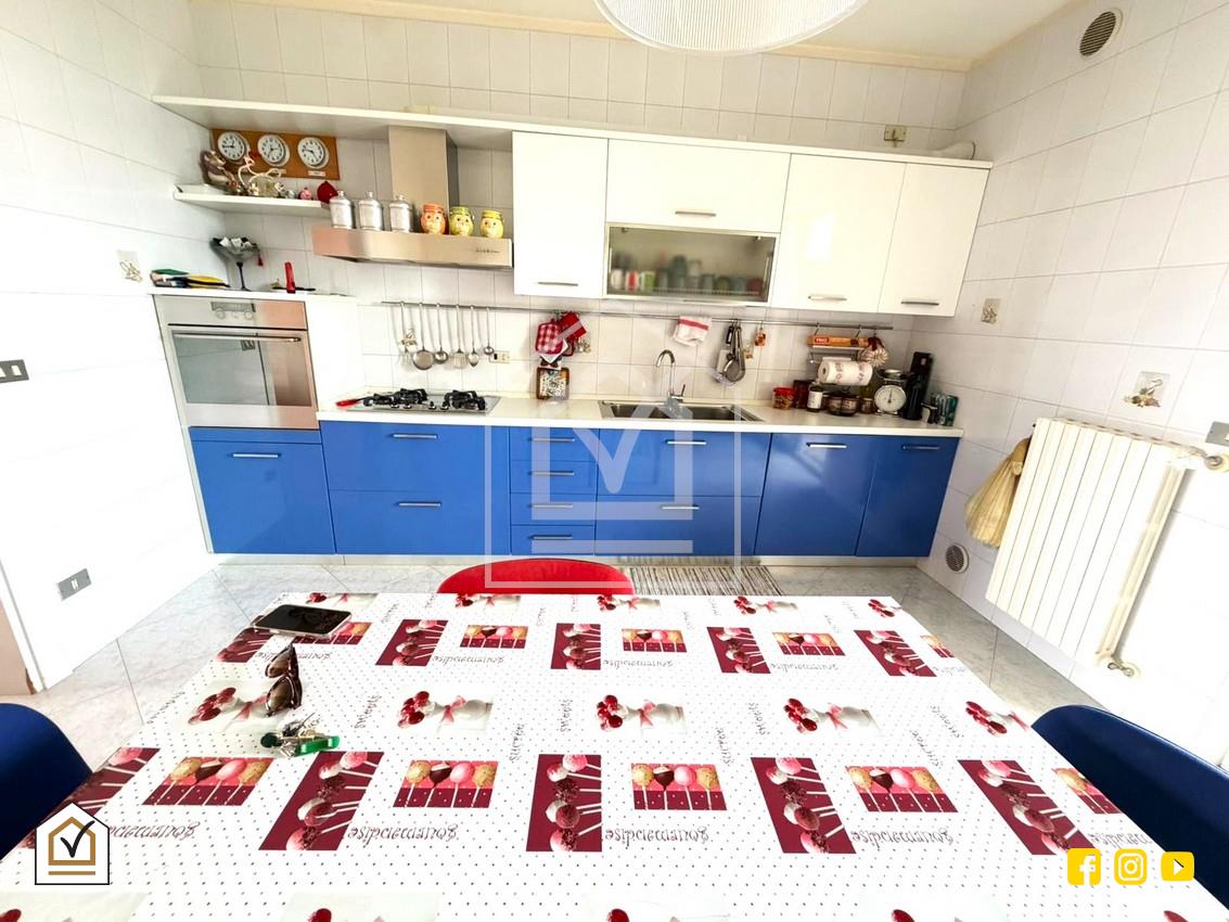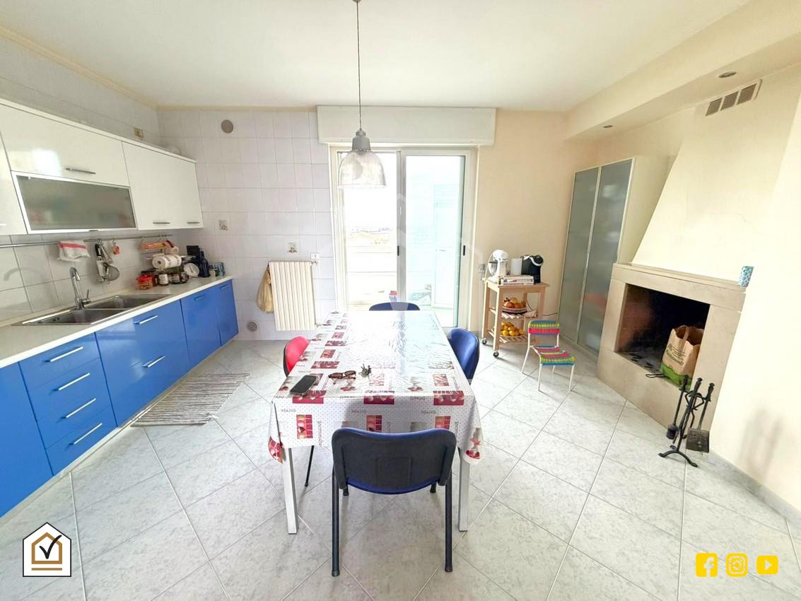 La cucina, spaziosa e funzionale, è dotata di un camino che valorizza l’ambiente e crea un’atmosfera calda e conviviale. Dalla cucina si accede al secondo balcone, dove trovano spazio un ripostiglio e un vano tecnico, soluzioni pratiche per organizzare al meglio la casa e mantenerla ordinata.
