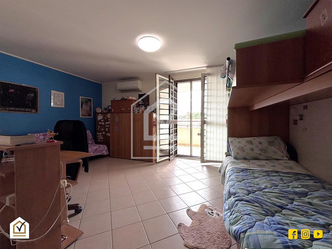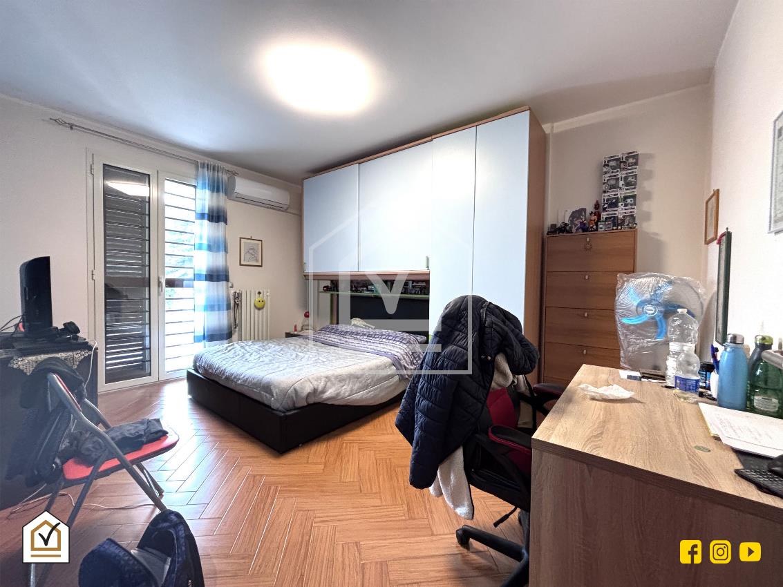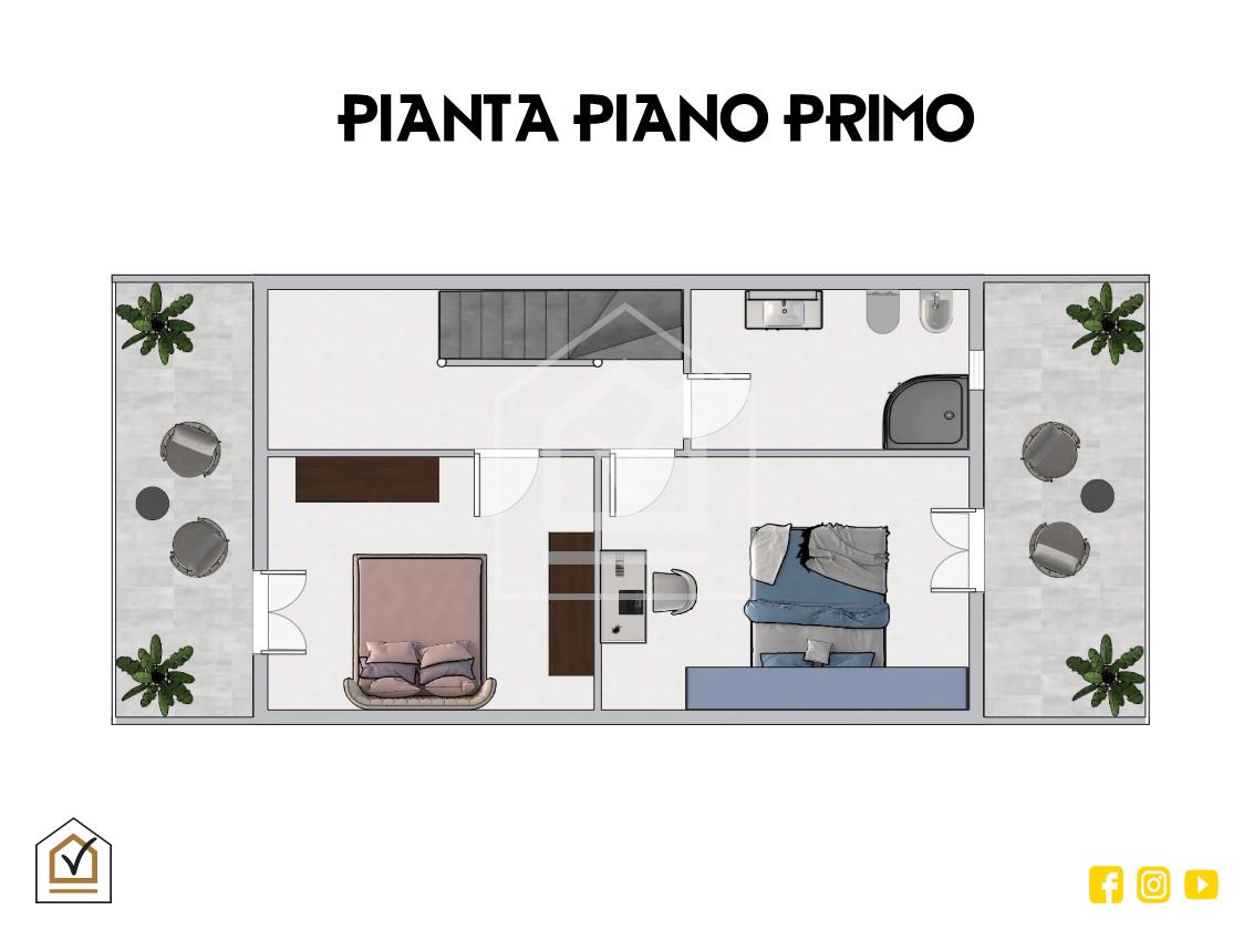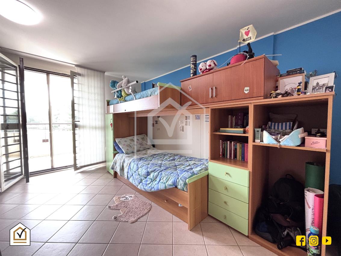 Salendo al primo piano si sviluppa la zona notte composta da camera matrimoniale e cameretta, entrambe con affaccio sui rispettivi balconi. Sullo stesso livello è presente anche un bagno finestrato con box doccia, comodo e funzionale per la zona notte.